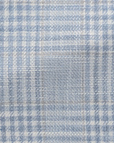 sky blue wool, cotton, silk & linen sharkskin w/ ivory glen plaid and storm gray windowpane