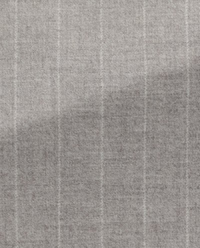 This taupe suit and its unique textured look takes the winter stripe to a cozy new level. Crafted from Favola® fabric made in Italy by Loro Piana. The blend of premium wool with a touch of cashmere is soft and comfortable with a flannel finish. Style it with a sand knit and chocolate plain toe loafers to complete the look. Make this suit your own with our many customization options. Wool & cashmere Chalk stripe Warm Flannel finish Soft feel