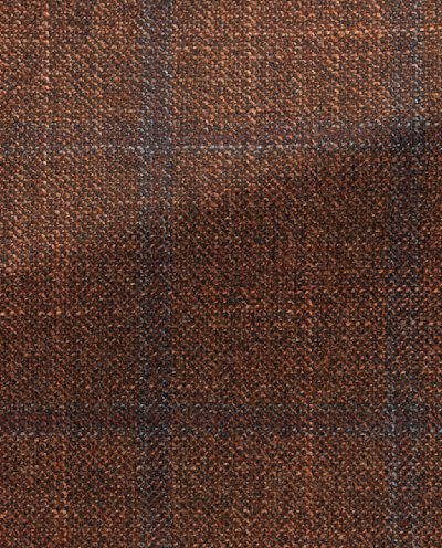 This mahogany brown jacket with a blue windowpane offers lustrous winter style. Crafted from Silk Air® fabric made in Italy by Loro Piana. The soft and slubbed blend of merino wool, silk, and cashmere is lightweight and breathable with a textured look. Designed here as a 2.5-button lightweight jacket. Style it with a warm knit, selvedge jeans, and suede boots to complete the look. Make this jacket your own with our many customization options to choose from. Wool, silk, & cashmere Windowpane Lightweight Breathable Soft feel