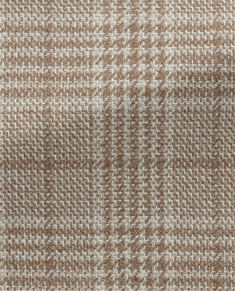 With an untraditional palette and distinctive tweed look, this camel and ivory plaid jacket is a classic reimagined. Crafted from Capolavoro Tweed® fabric made in Italy by Loro Piana. The blend of wool with a touch of silk is both super soft and warm. Designed here with low-gorge lapels. Style it with a warm knit, white jeans, and suede boots to complete the look. Make this jacket your own with our many customization options. Wool & silk Glen plaid Tweed look Warm Soft feel