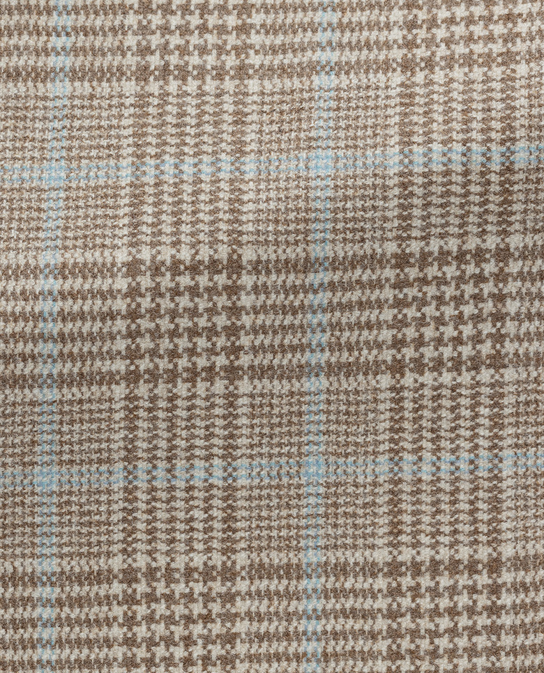 This tan plaid jacket with hints of light blue is the ultimate in luxury and comfort. Crafted from Cashmere Wish® fabric made in Italy by Loro Piana. The breathable blend combines S170 merino wool and cashmere to create an extremely soft and drapable fabric that will envelop you with warmth. Designed here with low-gorge lapels. Style it with a polo knit, moleskin trousers, and suede shoes to complete the look. Make this jacket your own with our many customization options to choose from. Merino wool & cashmere Glen plaid Warm Fluid drape Soft feel
