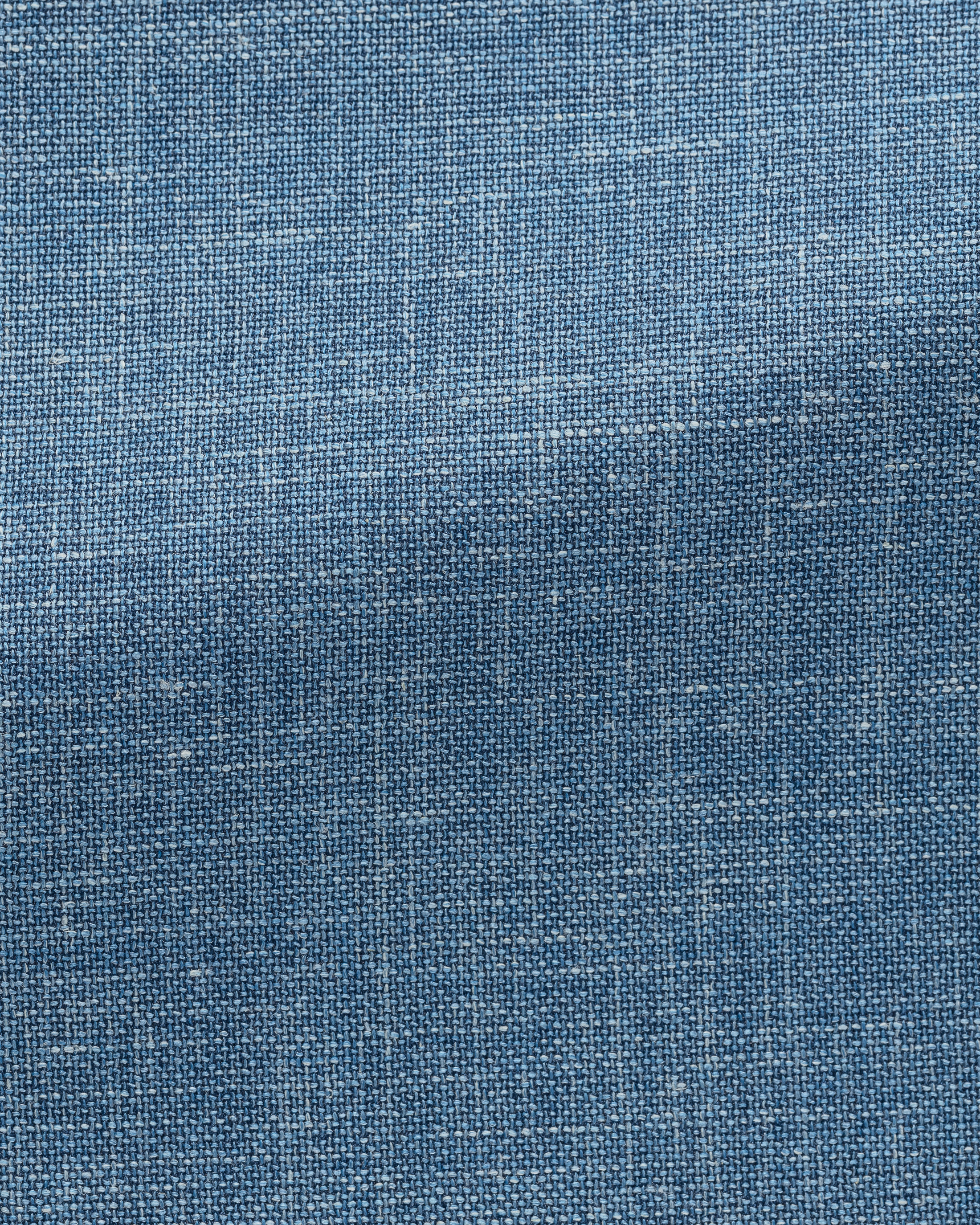 This ocean blue jacket blends a colorful basketweave with mélange effect for contemporary comfort and coolness in one. Crafted from Jersely® fabric made in Italy by Loro Piana. The mill creates the elasticity of knitted jersey by combining the finest pure wool and linen with a small percentage of stretch for a soft, breathable, and naturally odor resistant garment that moves with the body. Designed here as a 5-button lightweight jacket with pleated cuffs. Style it with a tonal polo knit, stretch 5-pockets, and blue boat shoes to complete the look.