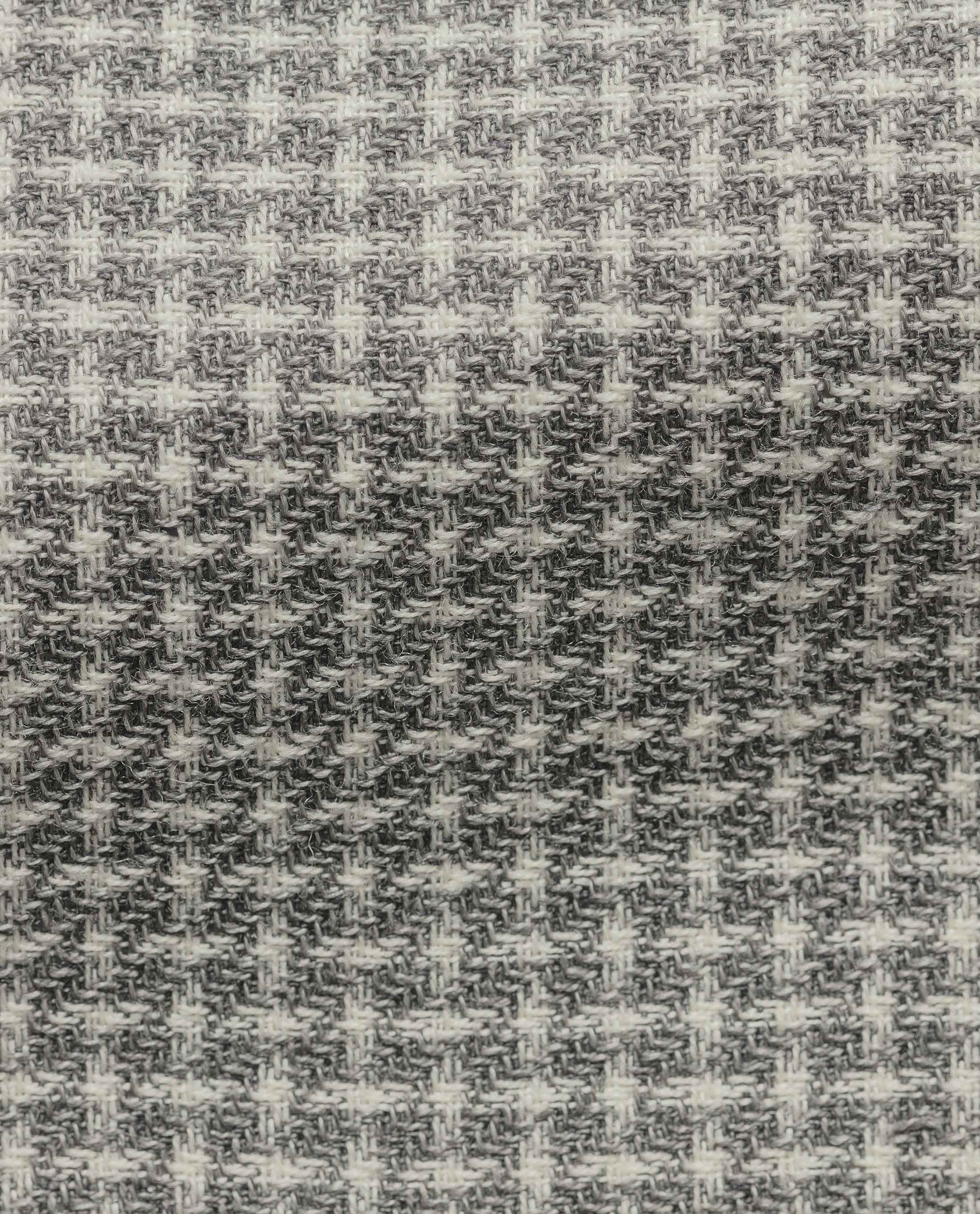 This blend of linen and cotton double-twisted yarns is ideal as a transitional item and all-around performance piece. The gray and white modern check creates unique shades and textures that draw the eye in.
