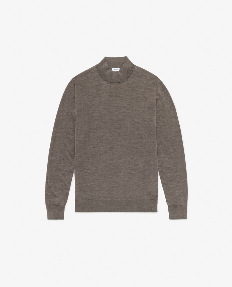 This dark taupe knit rivals the breathable, lightweight softness of high-quality cashmere thanks to its S160 ultra-fine merino wool yarn, spun in Italy by the masters at Loro Piana. Crafted on demand by 3D knitting machines to avoid the stitched seams typical of mass production, creating a sleeker, more luxurious look. Designed here as a mock neck in single-ply yarn, perfect for staying cool in summer and easy to layer in any season. Prefer a different style? Every piece is made exclusively for you, with your choice of design options. 100% merino wool Cashmere-like feel Ultra-fine fibers Breathable Lightweight