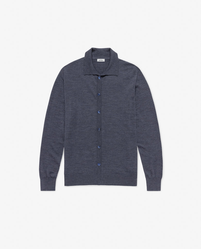 This denim blue knit rivals the breathable, lightweight softness of high-quality cashmere thanks to its S160 ultra-fine merino wool yarn, spun in Italy by the masters at Loro Piana. Crafted on demand by 3D knitting machines to avoid the stitched seams typical of mass production, creating a sleeker, more luxurious look. Designed here as a cardigan in single-ply yarn, perfect for staying cool in summer and easy to layer in any season. Prefer a different style? Every piece is made exclusively for you, with your choice of design options. 100% merino wool Cashmere-like feel Ultra-fine fibers Breathable Lightweight