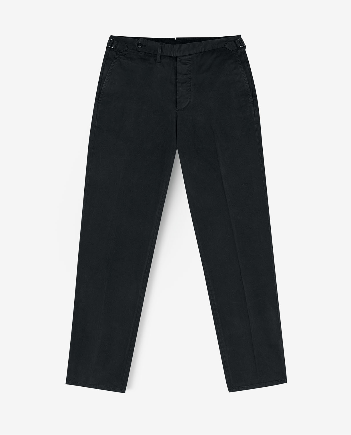 These anthracite gray chinos offer a versatile, muted look for dressing up or down. Made from stretch cotton by Olimpias in a broken twill for a solid yet comfortable construction. Dyed as a whole to give a washed color variation along the seams and extra color in the lining. Make these chinos your own with our many customization options to choose from.