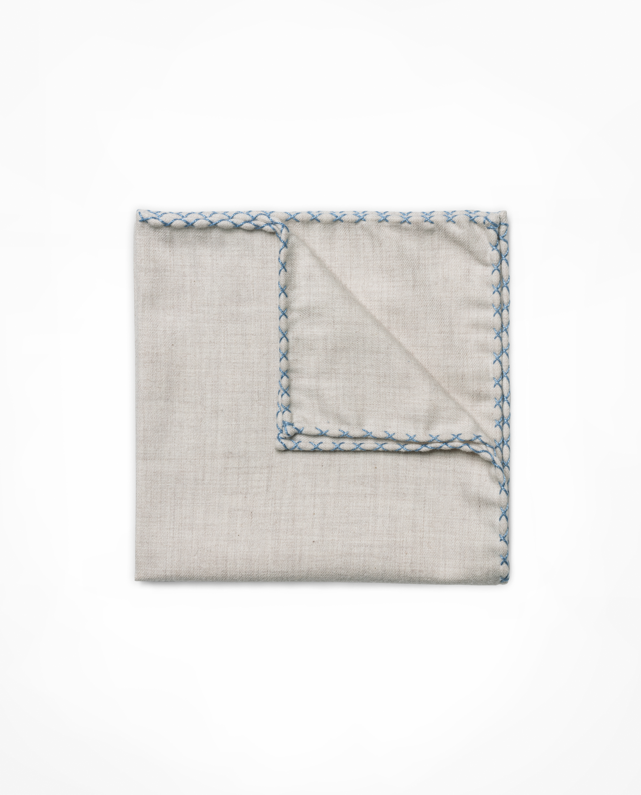Beige Flannel Sky Blue Handstitched Pocket Square