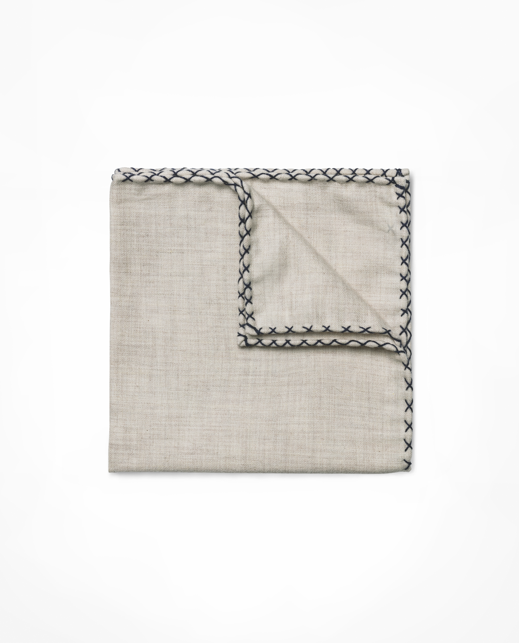 Beige Flannel Navy Handstitched Pocket Square