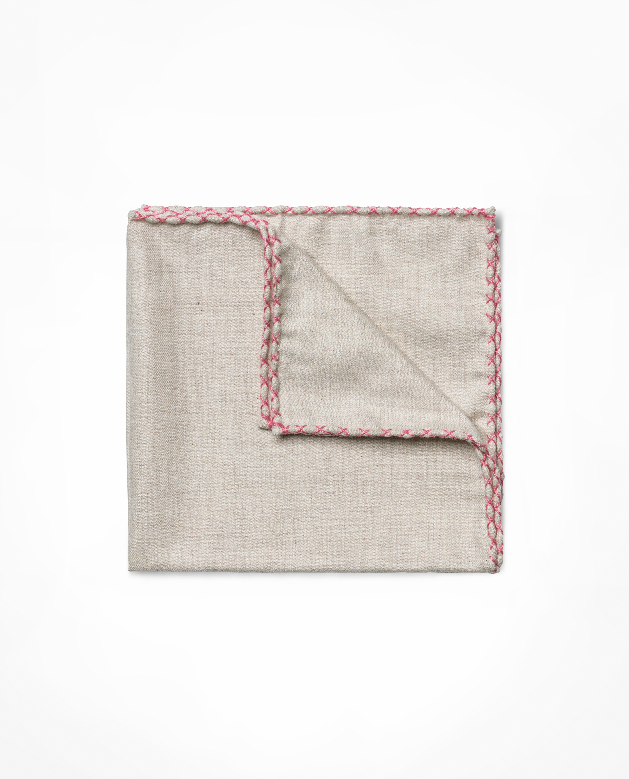 Lightweight and relatively prone to wrinkles (the reason we only offer a blended version for ties), cotton is a strong natural fiber that is airy and easy to clean. This beige flannel twill comes in perfectly neutral beige livened up with across-cross stitch edging.