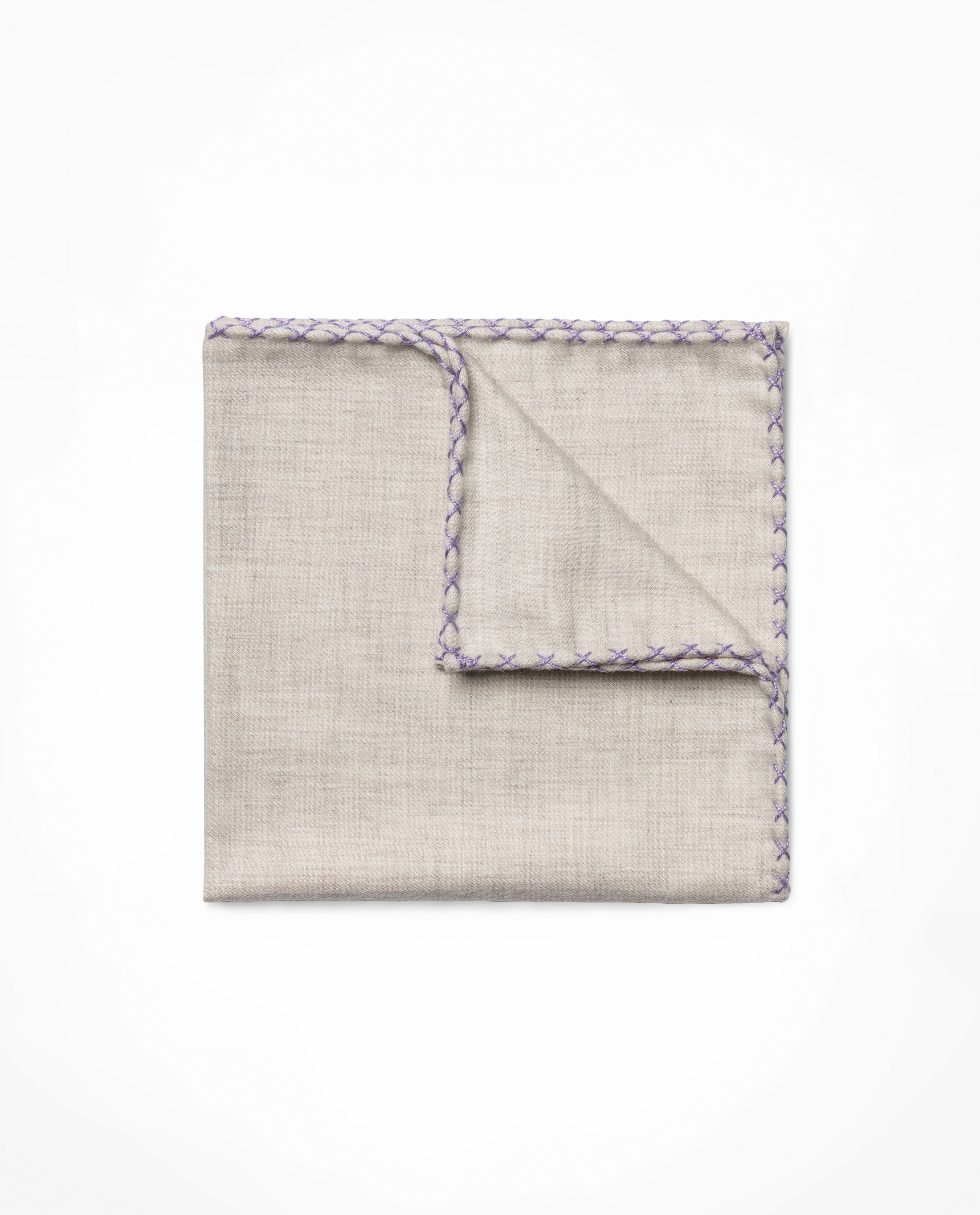 Beige Flannel Lavendar Handstitched Pocket Square