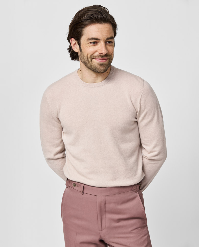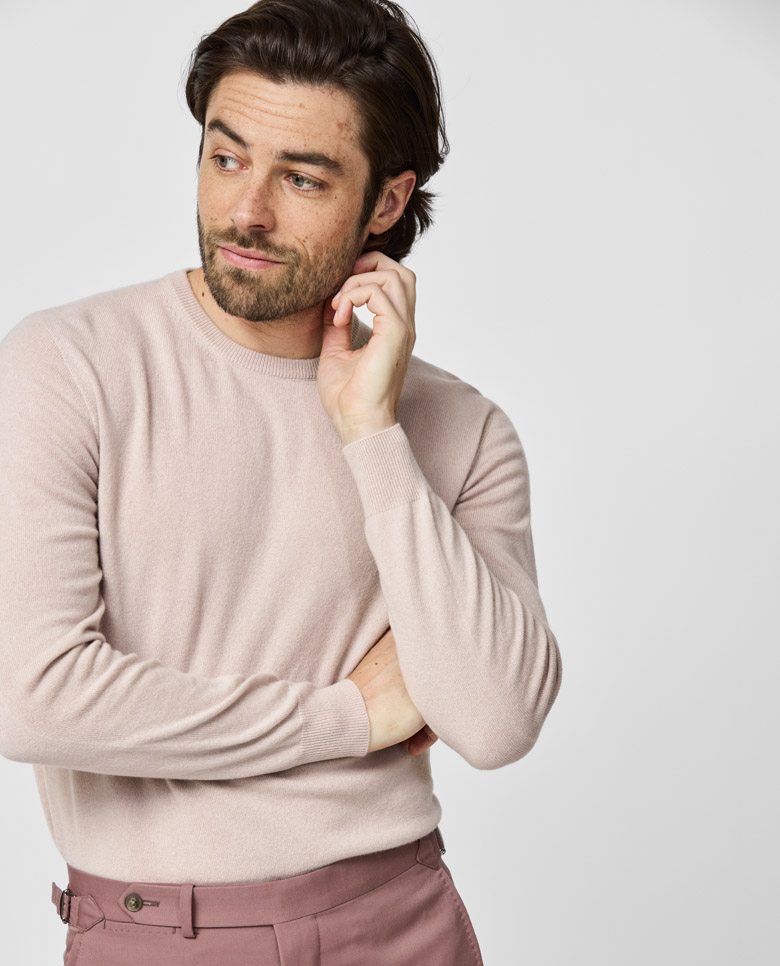 A luxurious blush knit with an elevated seamless look. Made from pure cashmere for a soft feel with superior warmth. Designed here as a crew neck, in single yarns for a lighter wear. Make this knitwear your own with our many customization options to choose from. 100% cashmere Lightweight warmth Breathable Soft feel