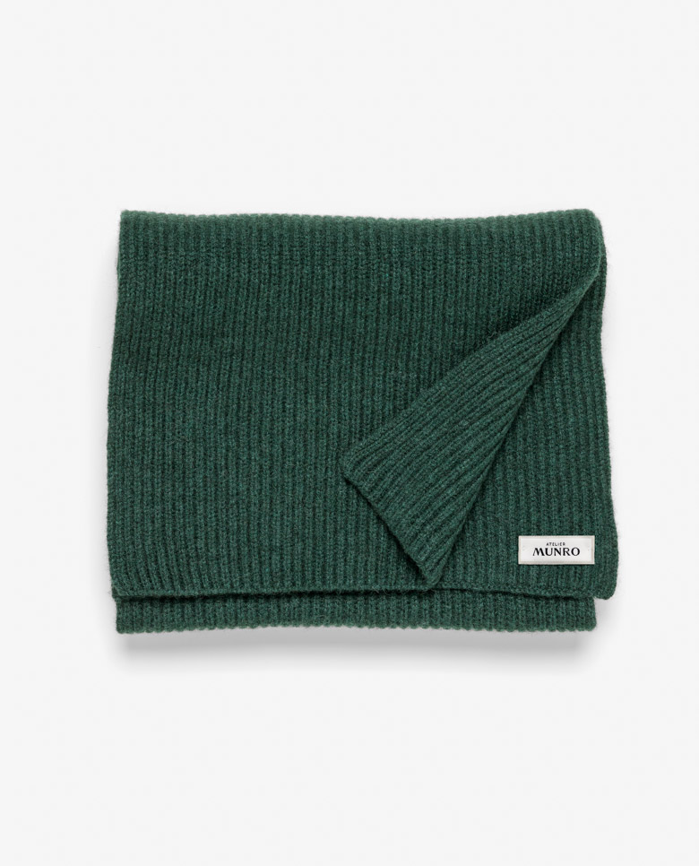 Keep the cold at bay with this luxurious bottle green scarf in a ribbed design. Made from pure cashmere for a soft and lightweight feel with superior warmth. An accessory that will last for years to come and improve with age.