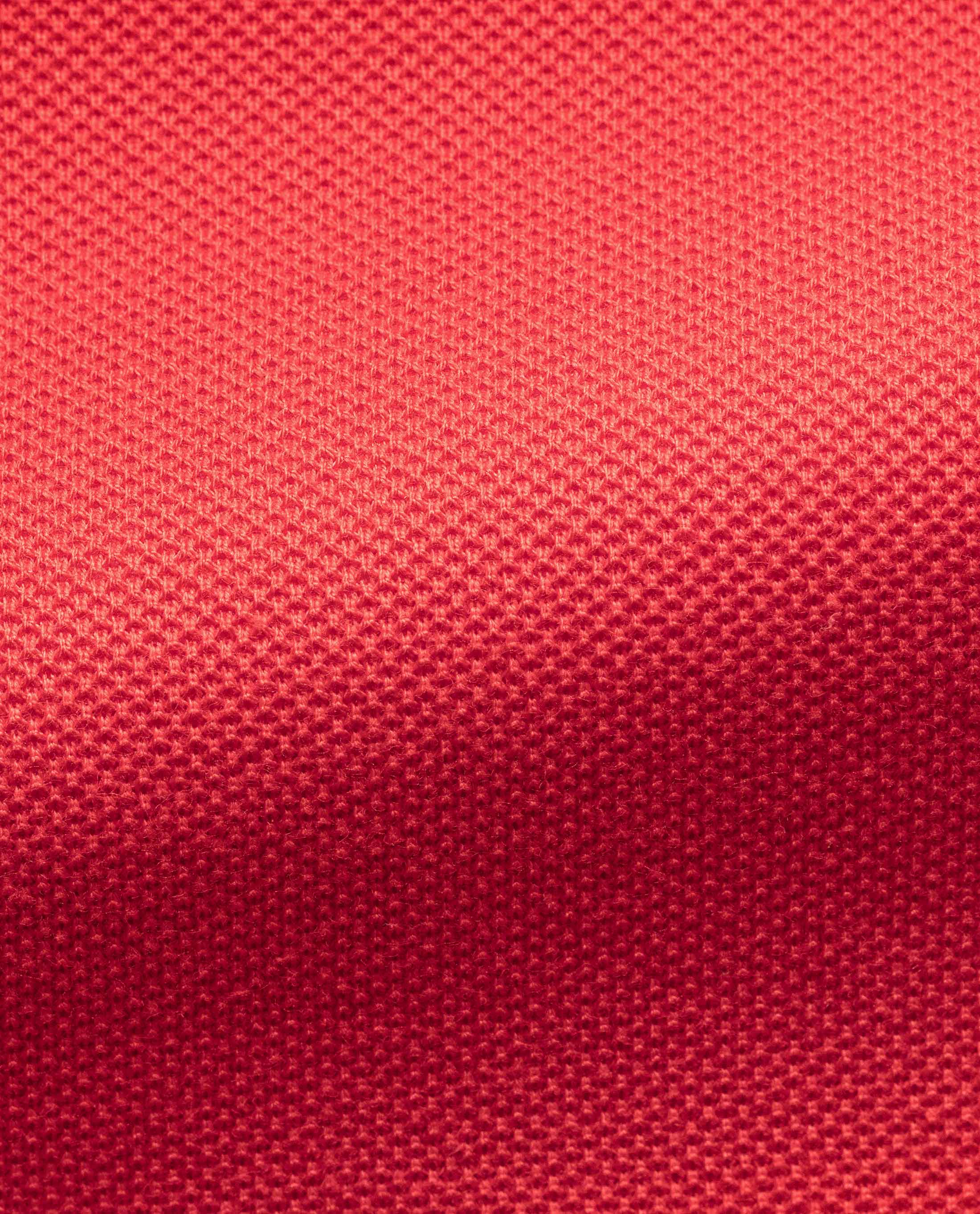 A bright red piqué knit shirting featuring subtle geometirc designs.
