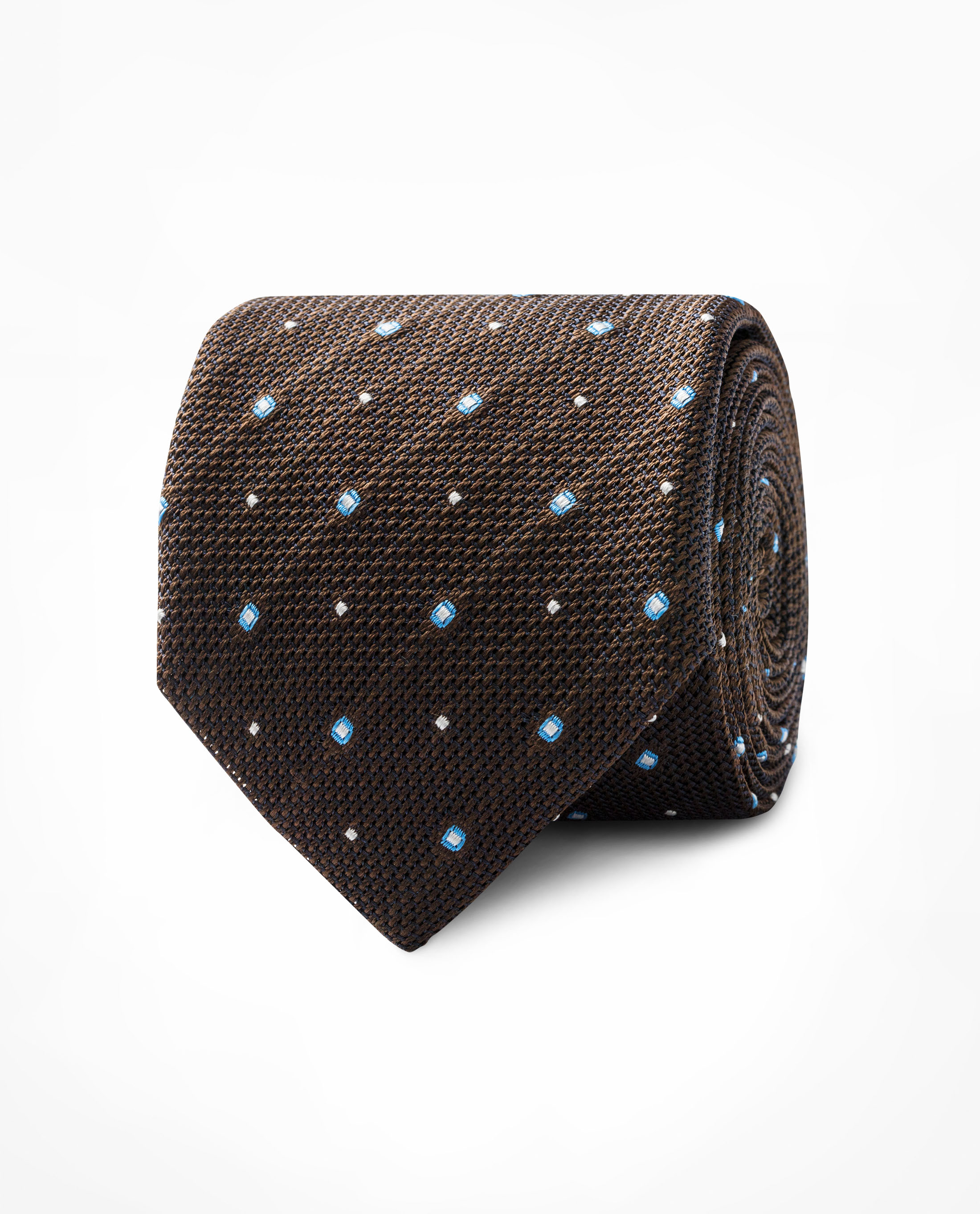 Grenadine is a distinctive weave of silk originating from Italy and constructed on jacquard looms. Leave an impression with this refined take on texture that, unlike knits, pairs well with more formal looks. Now available with in a range of richly colored modern polka dots.