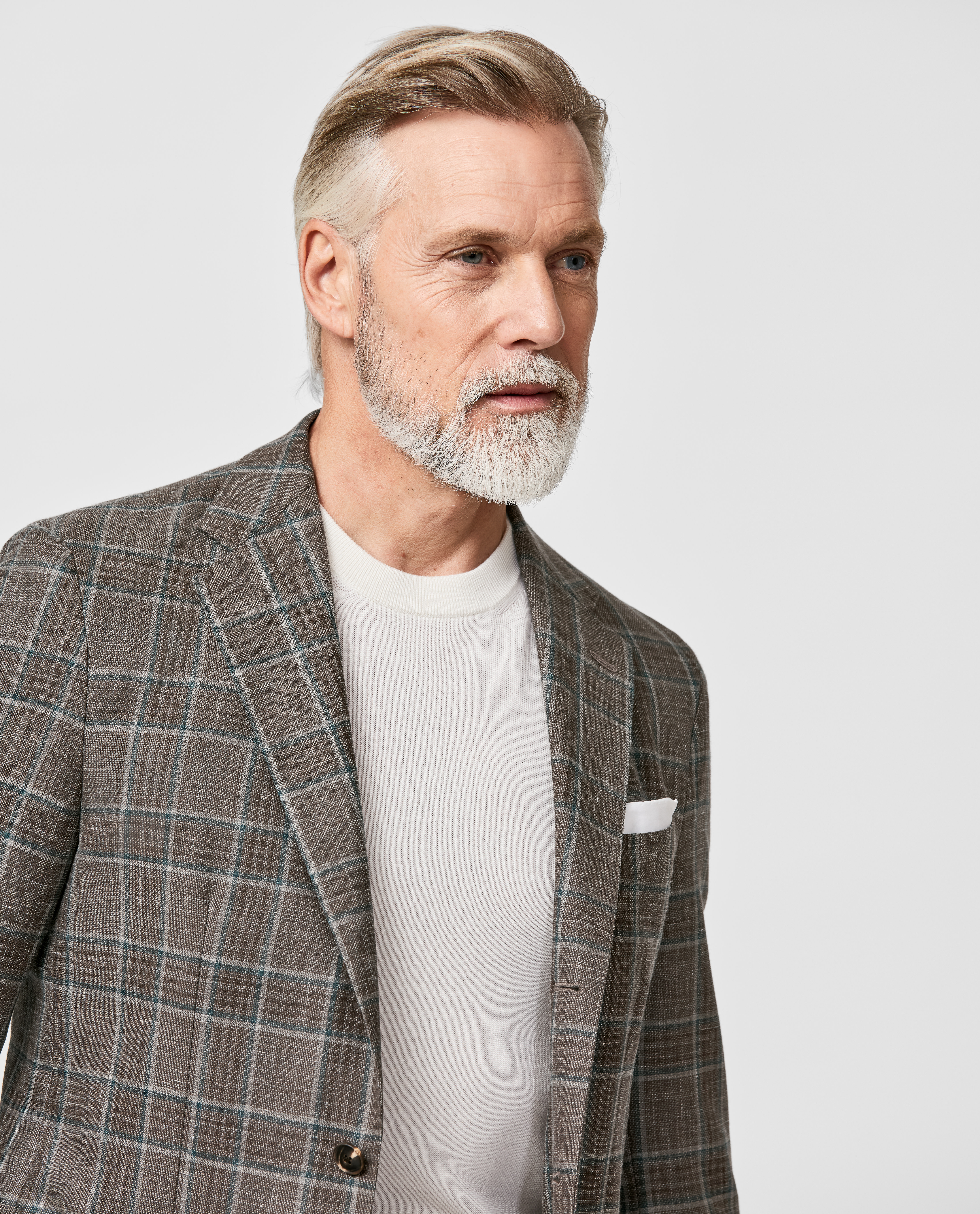 Crafted from a wool-silk-linen blend that’s light enough for summer yet versatile enough for the in-between seasons, this brown plaid jacket features an organic, earthy texture and sophisticated bottle green overcheck. Designed here with a 2.5-button closure, low-gorge notch lapels, and patch side pockets. Pair it with a lightweight knit, trousers, and loafers to create a refined and modern seasonal look. Prefer a different style? Every piece is made exclusively for you, with your choice of design options. Wool, silk & linen blend Plaid with overcheck Earthy texture Light four-season weight