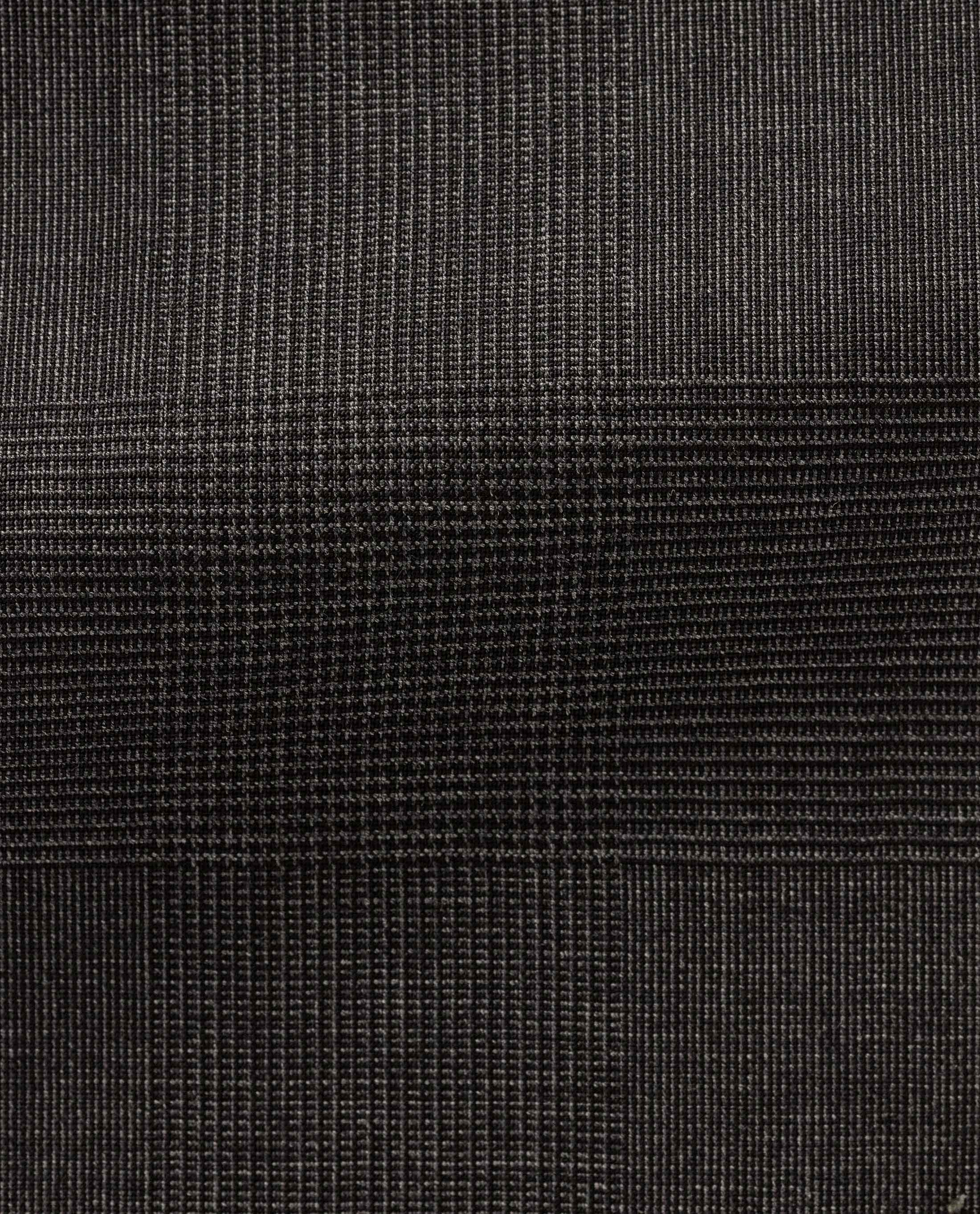 A limited-edition, dark grey and black, subtle glencheck featuring a thin, summer weight, a touch of stretch for extra freedom of movement and a smooth, cool and crisp feel. Made with: wool and cotton.