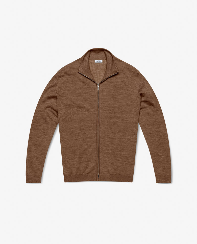 This chestnut brown mélange knit is a comfortable addition to your year-round wardrobe. The extra-fine merino wool is 3D knitted for a luxurious seamless look. Designed here with a full-length zip, made from single yarns for a lighter wear. Make this knit your own with our many customization options to choose from.