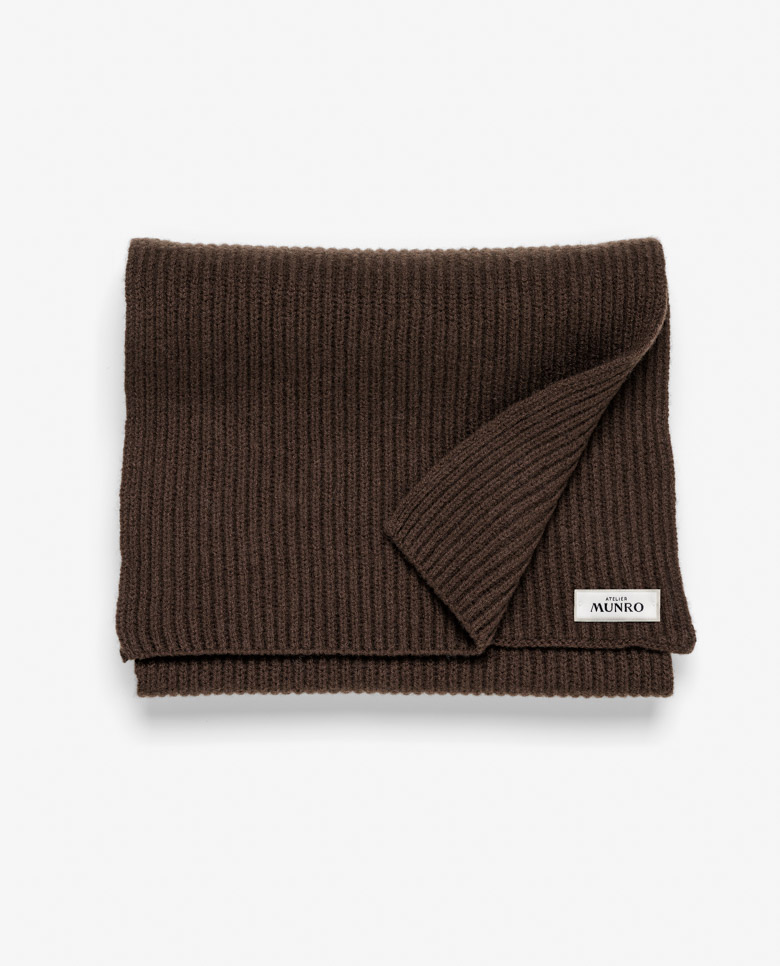 Wrap yourself up for winter with this chocolate brown ribbed scarf. Made from a high-quality blend of 90% Australian wool and 10% Inner Mongolian cashmere. The mix of ultra-fine wool with soft cashmere offers warmth you can wear every day.