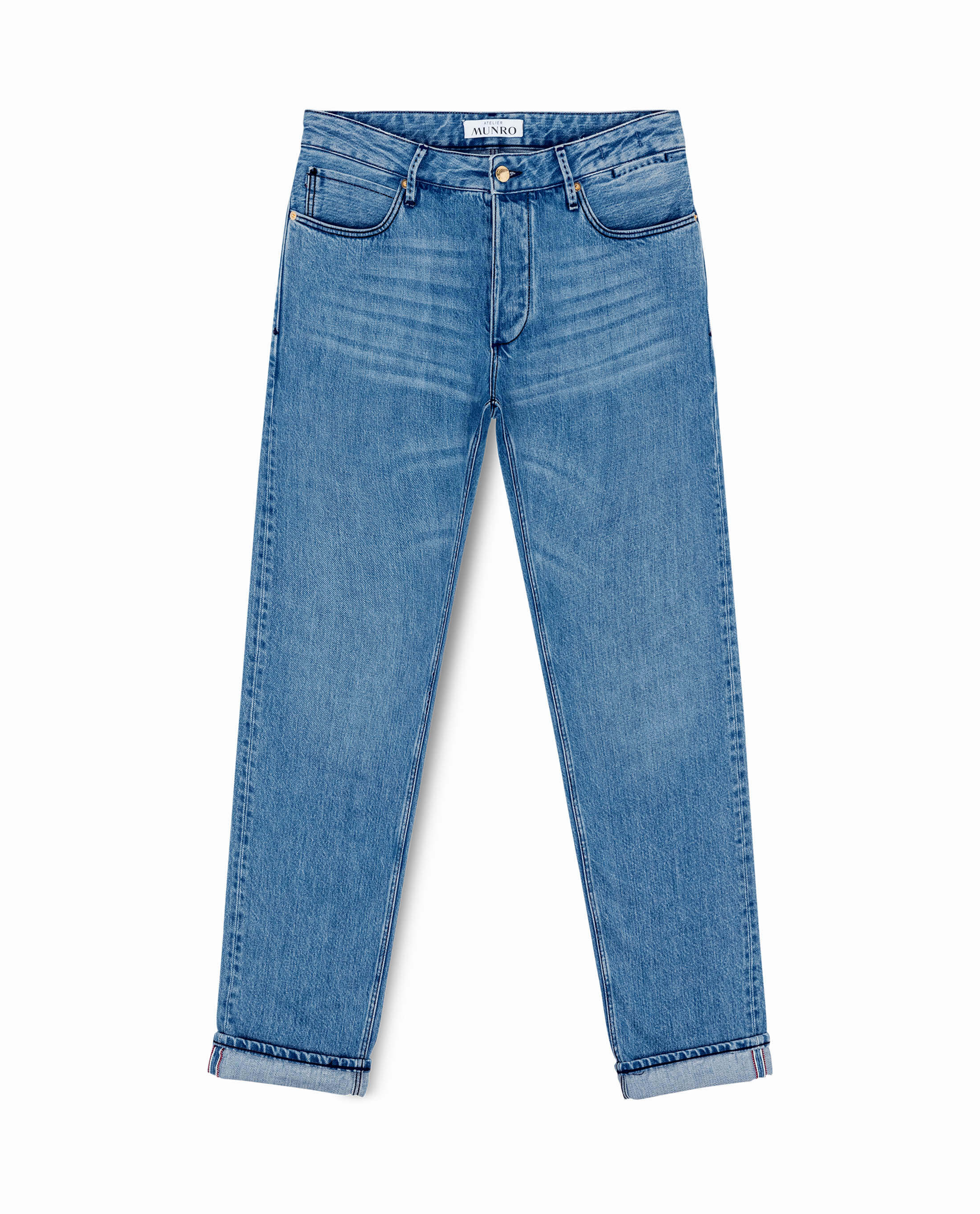 Made of denim fabric woven by the famous Candiani mill, this classic 3x1 selvedge twill construction can only be achieved on original vintage shuttle looms. This unique pair has been washed in the heart of Veneto, to create a sophisticated, worn-in look. Dyed with all-natural indigo dye–here in a modern used-blue.
