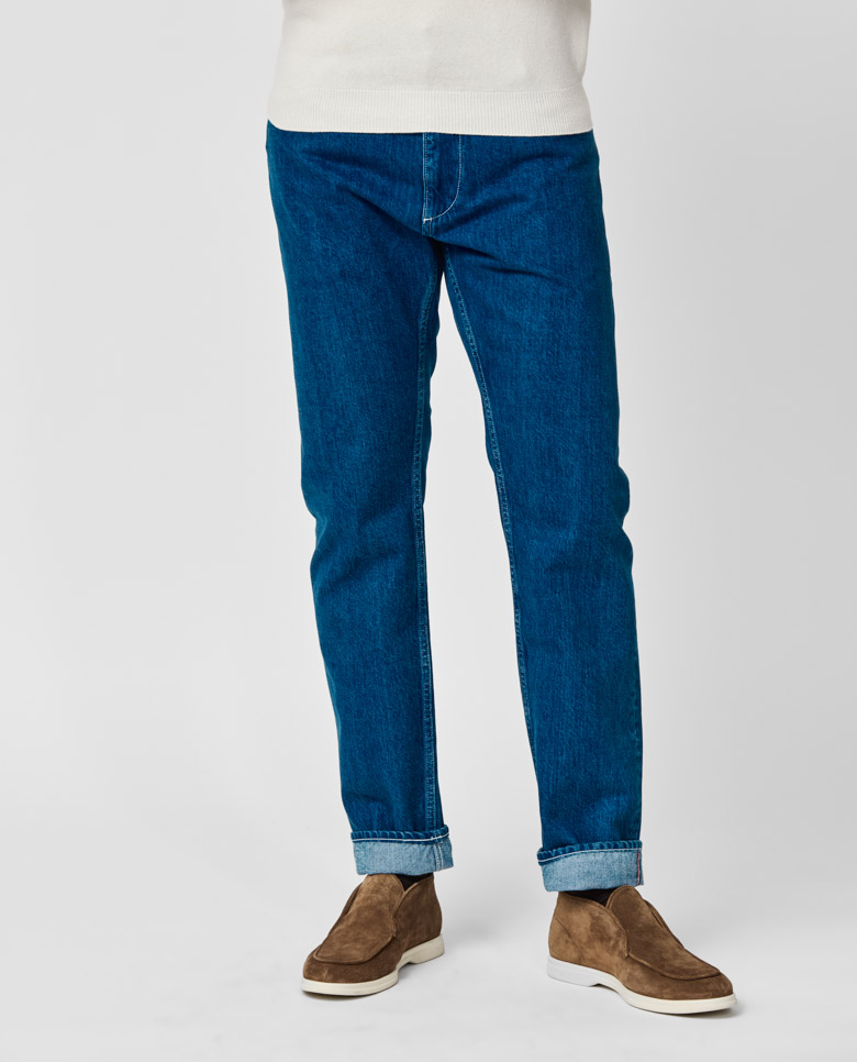 These classic blue jeans are dyed and crafted by the famous Candiani mill. Made from 3x1 selvedge twill denim woven on original vintage shuttle looms and washed in the heart of Veneto to create a sophisticated, worn-in look. Dyed with all-natural indigo dyes–here in a red cast. Make these jeans your own with our many customization options to choose from. 100% cotton Selvedge rigid Washed Worn-in look
