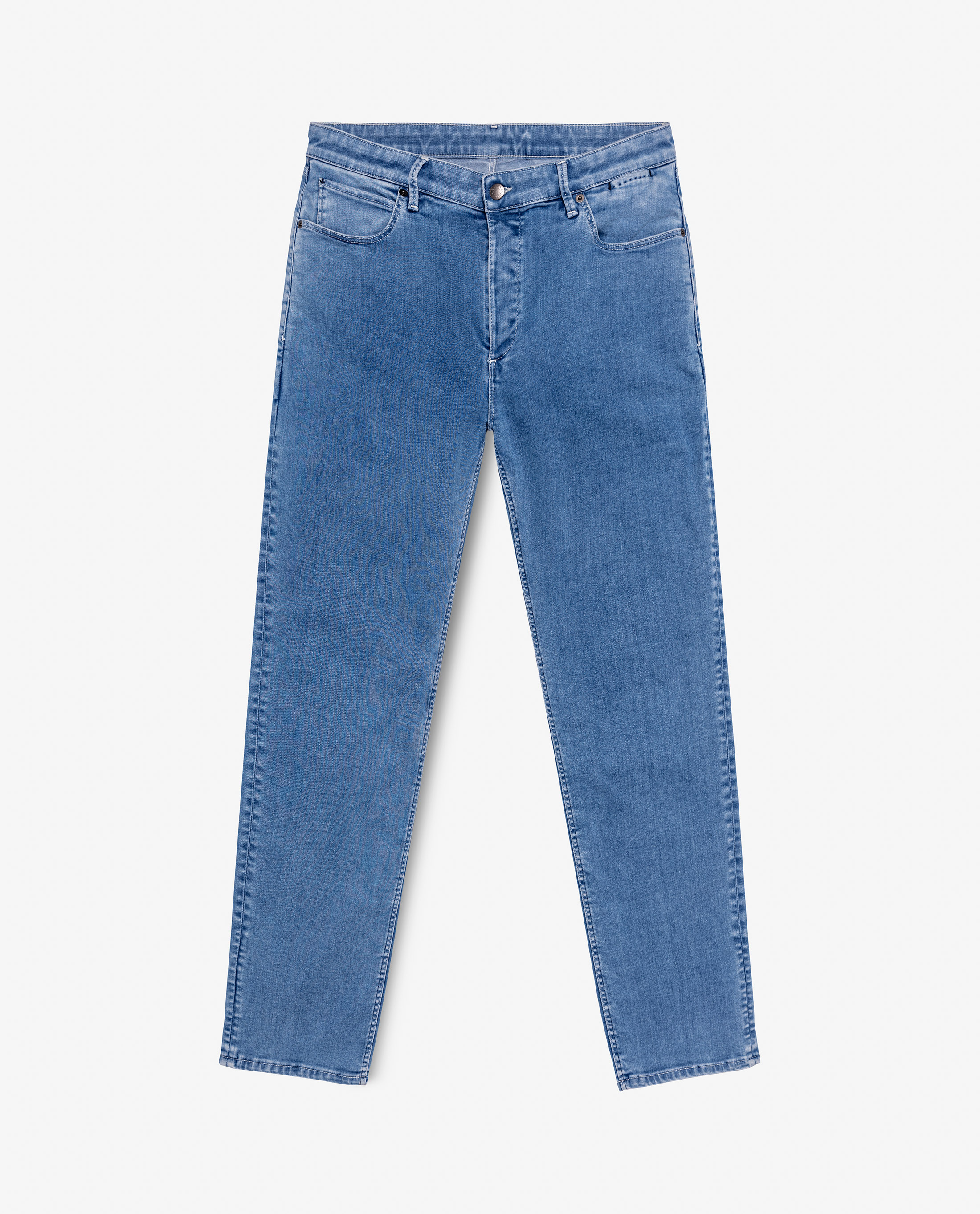 Our most comfortable denim option, these 9oz. vintage blue jeans are super lightweight with superior stretch. Made from a soft cotton blend twill by Candiani that is woven, dyed, and washed in Italy. Designed here with a faded wash. Make these jeans your own with our many customization options to choose from.