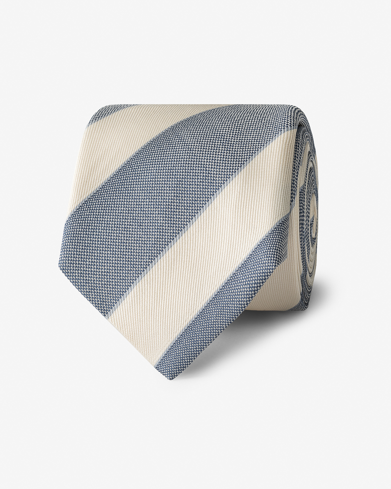 With a bold stripe and intriguing feel, this cobalt and ivory tie makes a confident statement whether you wear it to work or your next festive event. Crafted from a mix of cotton and silk, the basketweave construction creates a subtle texture, balancing polish with contemporary appeal. Make this tie your own with our range of design and personalization options. Handmade Cotton & silk Basketweave Textured feel