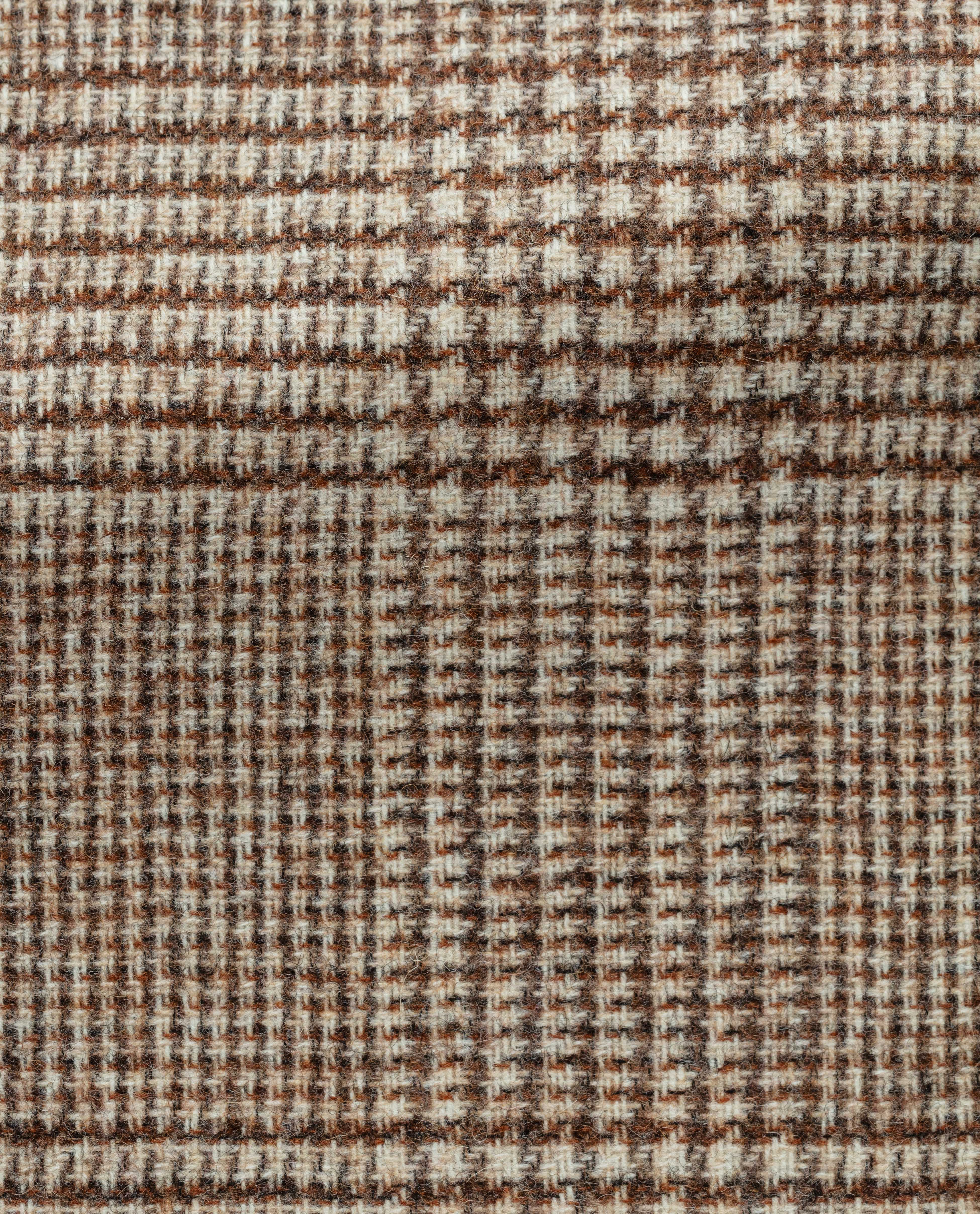 Bring luxury to a traditionally casual pattern with this cream with caramel Glen plaid jacket. Crafted from a rare blend of baby alpaca and 2-ply flamed wool yarns with a slightly brushed finish for extra texture and volume. Style it for cold weekends with turtle neck and city loafers. Make this jacket your own with our many customization options.