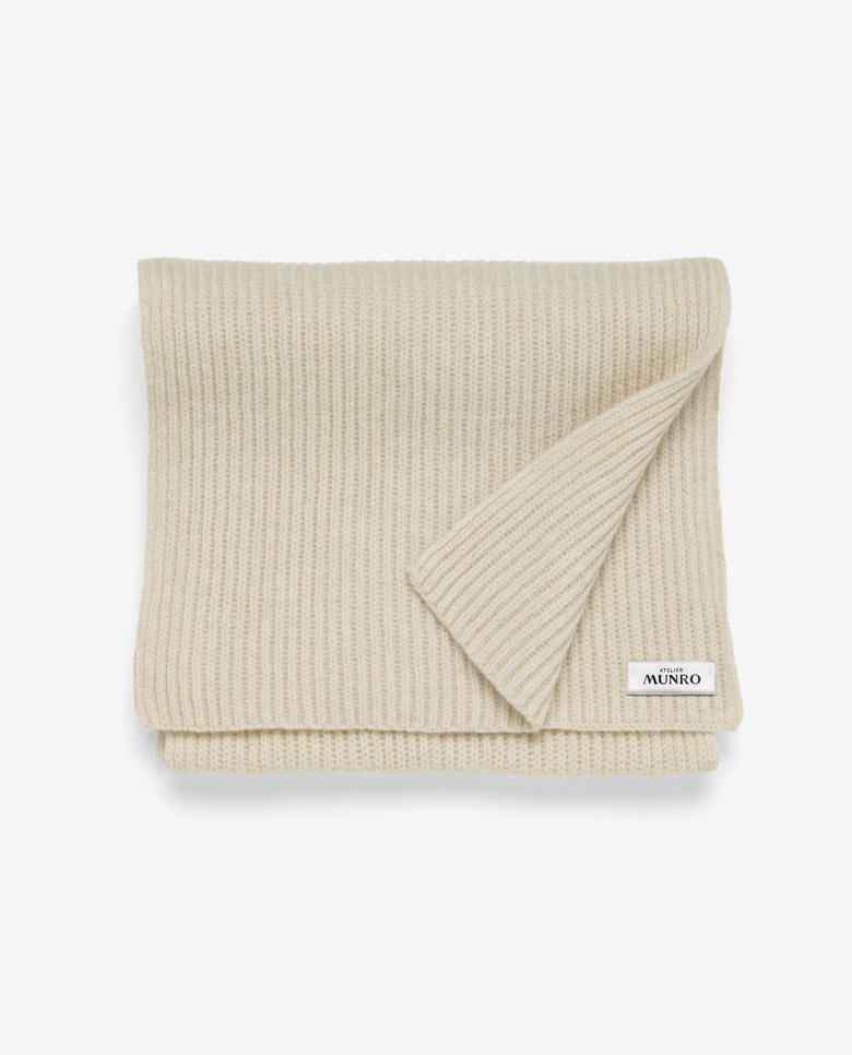 Wrap yourself up for winter with this cream ribbed scarf. Made from a high-quality blend of 90% Australian wool and 10% Inner Mongolian cashmere. The mix of ultra-fine wool with soft cashmere offers warmth you can wear every day.