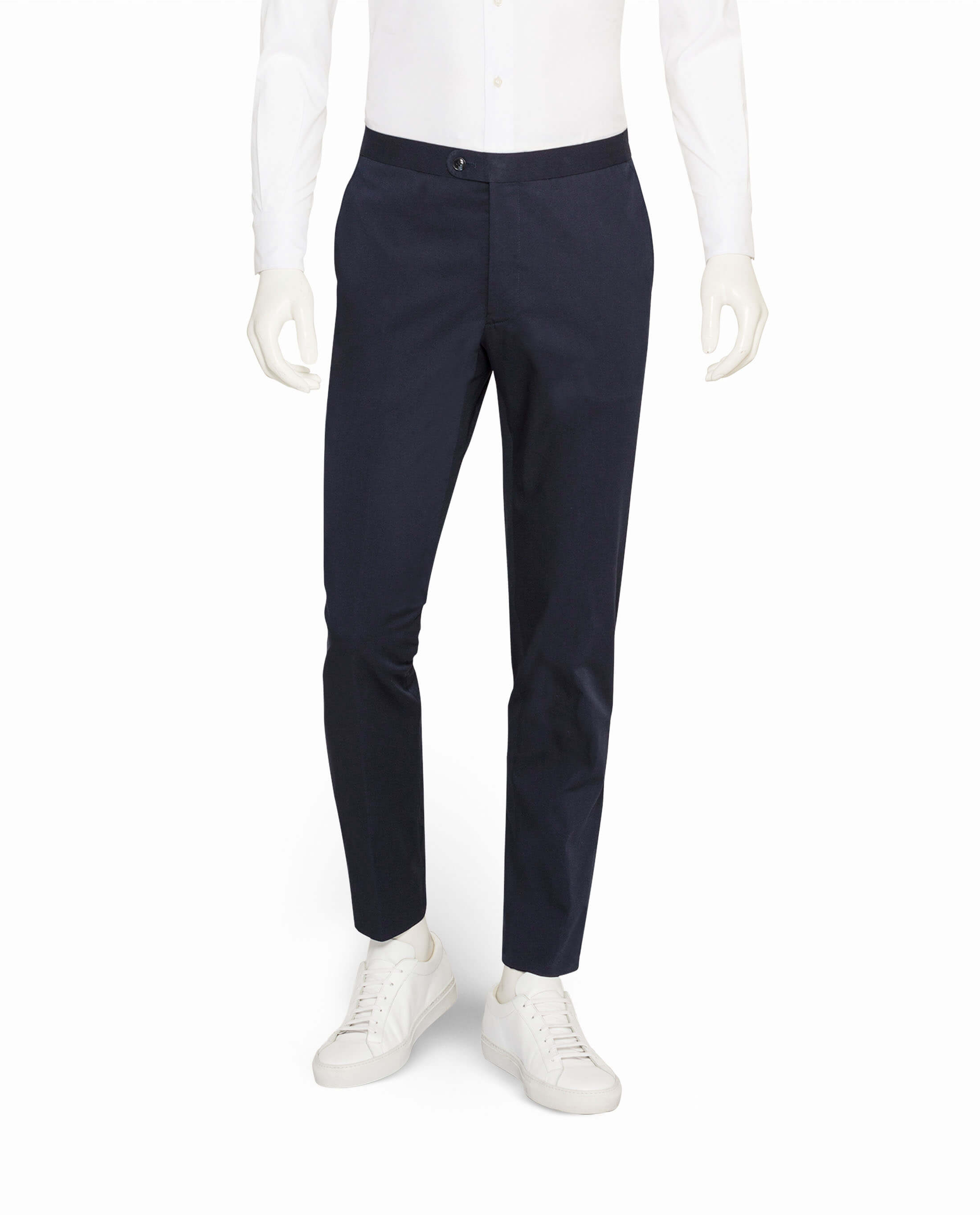 A versatile dark blue cotton blend featuring a smooth, crisp feel and a touch of stretch for extra freedom of movement.