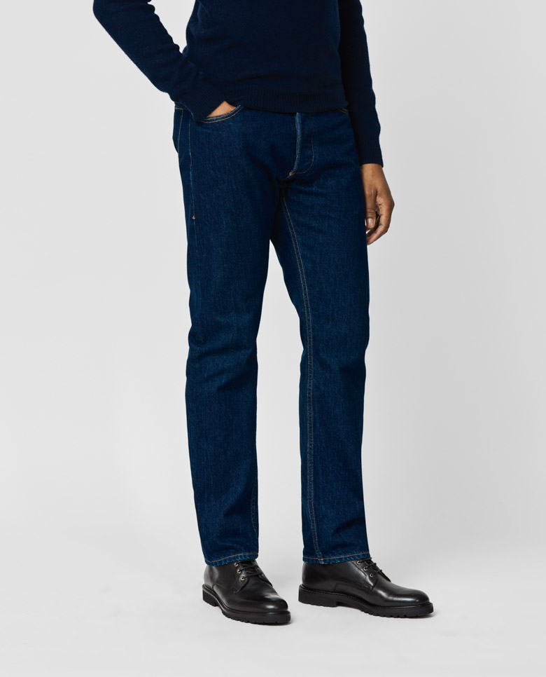 These classic dark blue jeans are dyed and crafted by the famous Candiani mill. Made from 3x1 selvedge twill denim woven on original vintage shuttle looms and washed in the heart of Veneto to create a sophisticated, worn-in look. Dyed with all-natural indigo dyes–here in a red cast. Make these jeans your own with our many customization options to choose from. 100% cotton Selvedge rigid Washed Red cast Worn-in look