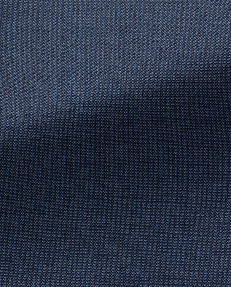 Lift your blue suit into new realms with this iridescent sharkskin fabric. Made from a smooth wool blend featuring a subtle two-tone effect and a touch of stretch for extra freedom of movement. Ideal for your most special events. Style it with a light blue shirt, tie, and calfskin shoes to complete the look. Make this suit your own with our many customization options to choose from.