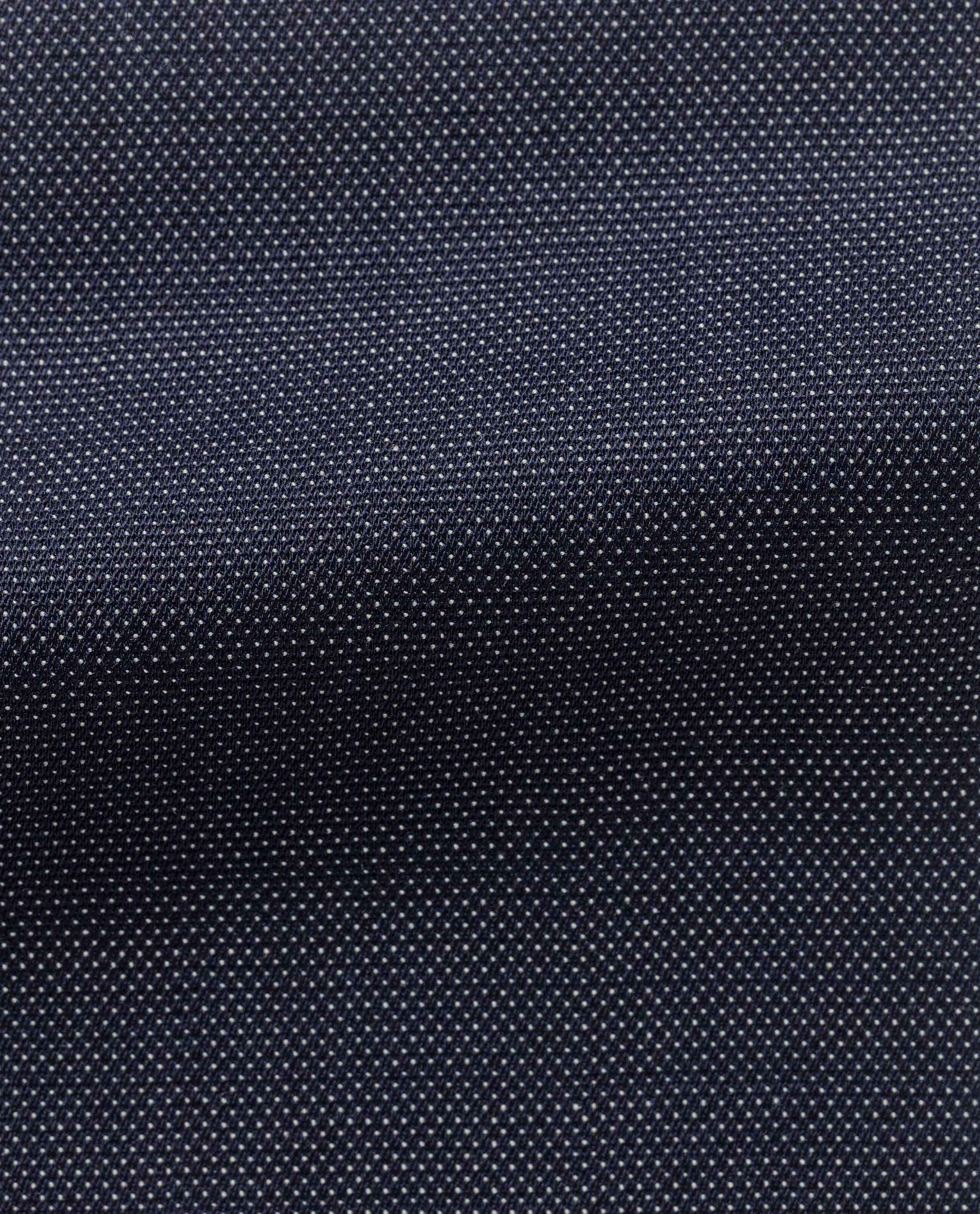 A subtly textured, seasonal dark blue micro dot weave in a blend of 99% wool and 1% elastane for a touch of stretch.