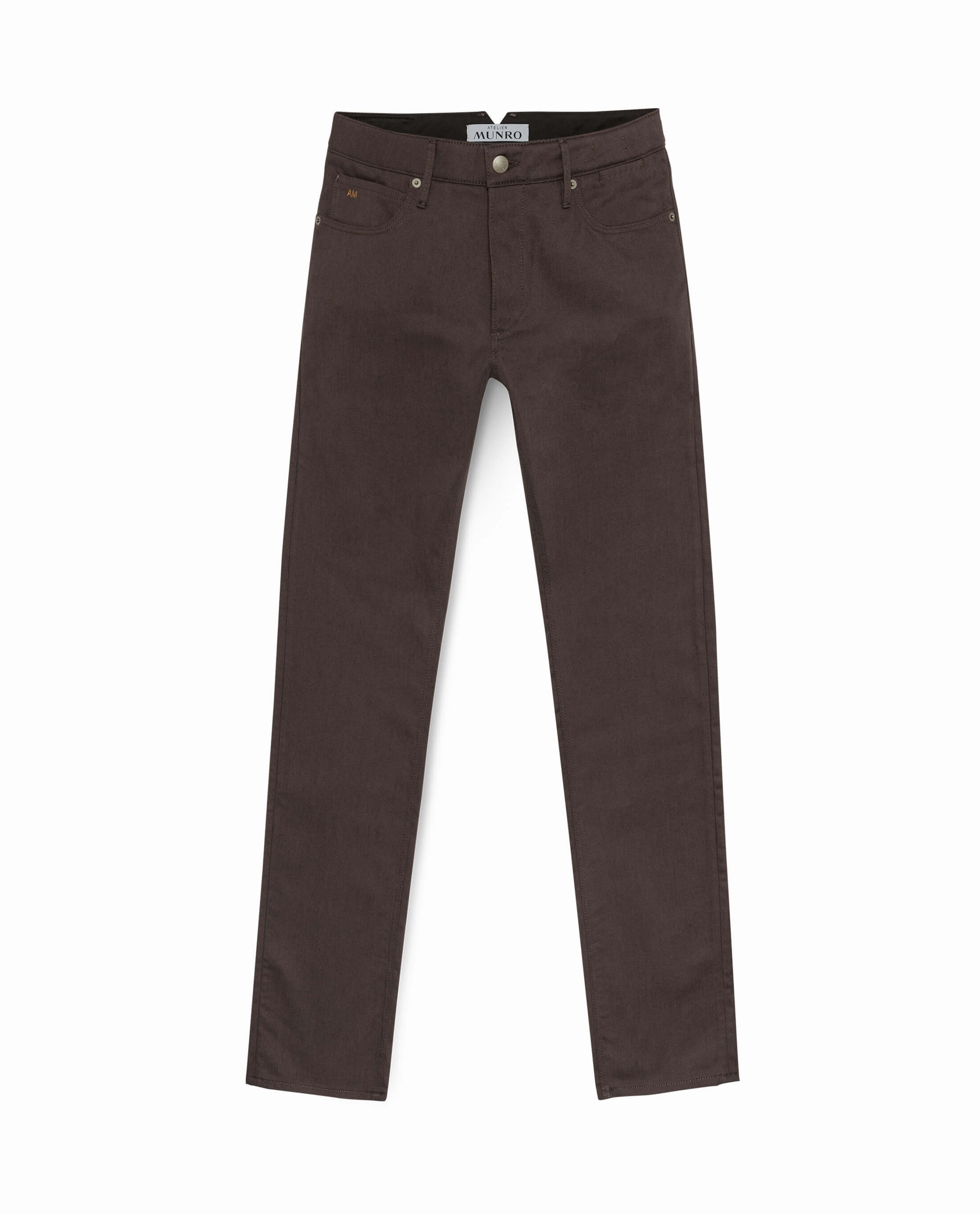 Rooted in the industrial heartland of Northern Italy, Olimpias has created a durable stretch cotton twill with an easy fit. Here in dark brown.