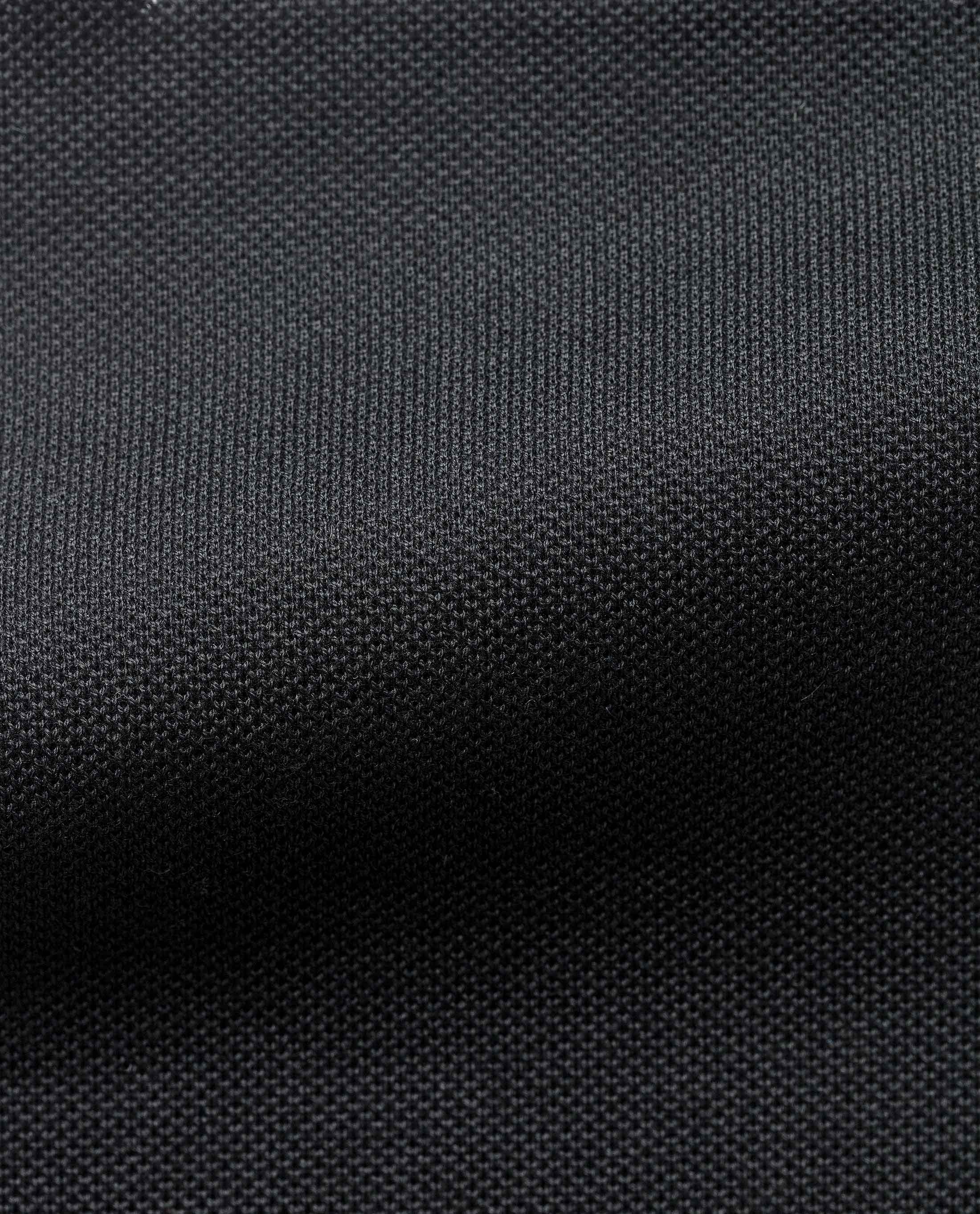 A dark gray piqué knit shirting featuring subtle geometirc designs.