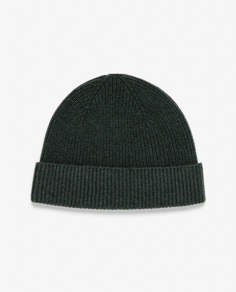 Ideal for the height of winter, this dark green ribbed beanie is cozy and comfortable. Made from a high-quality blend of 90% Australian wool with 10% Inner Mongolian cashmere. The mix of ultra-fine wool and soft cashmere offers warmth you can wear every day.