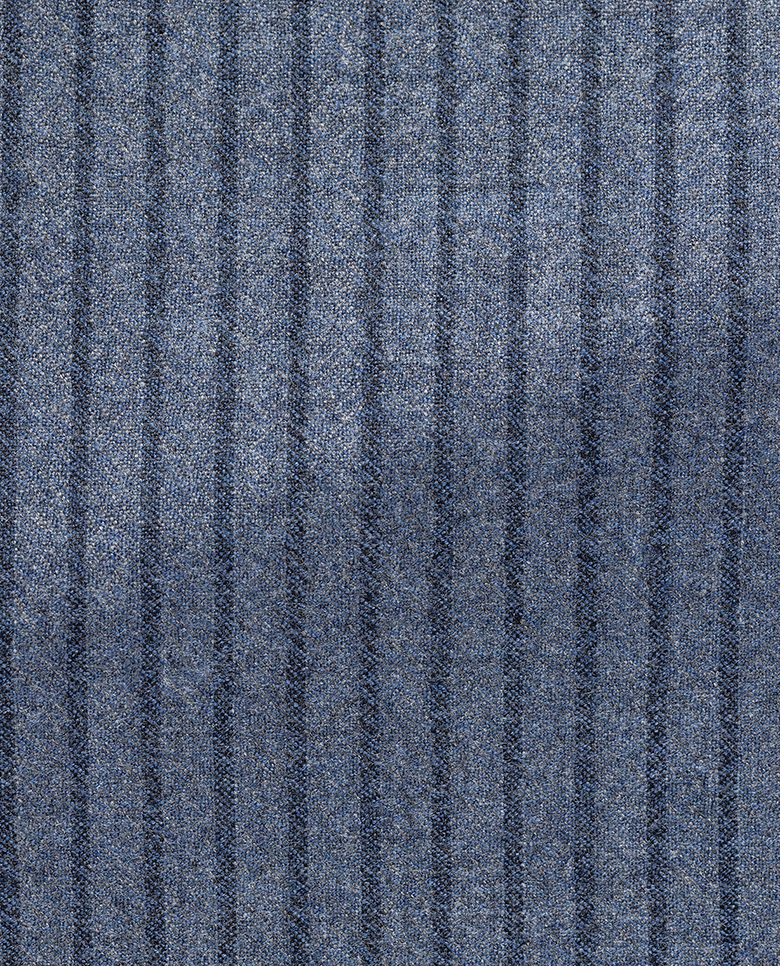 This denim blue suit with a darker stripe is a fun option for work or play. The S130 wool flannel is breathable with natural two-way stretch for all-day and all-year comfort. Designed here as a double-breasted jacket with patch side pockets. Style it with a midnight blue turtleneck and plain toe loafers to complete the look. Make this suit your own with our many customization options to choose from. S130 merino wool Flannel Natural bi-stretch Stripe Breathable