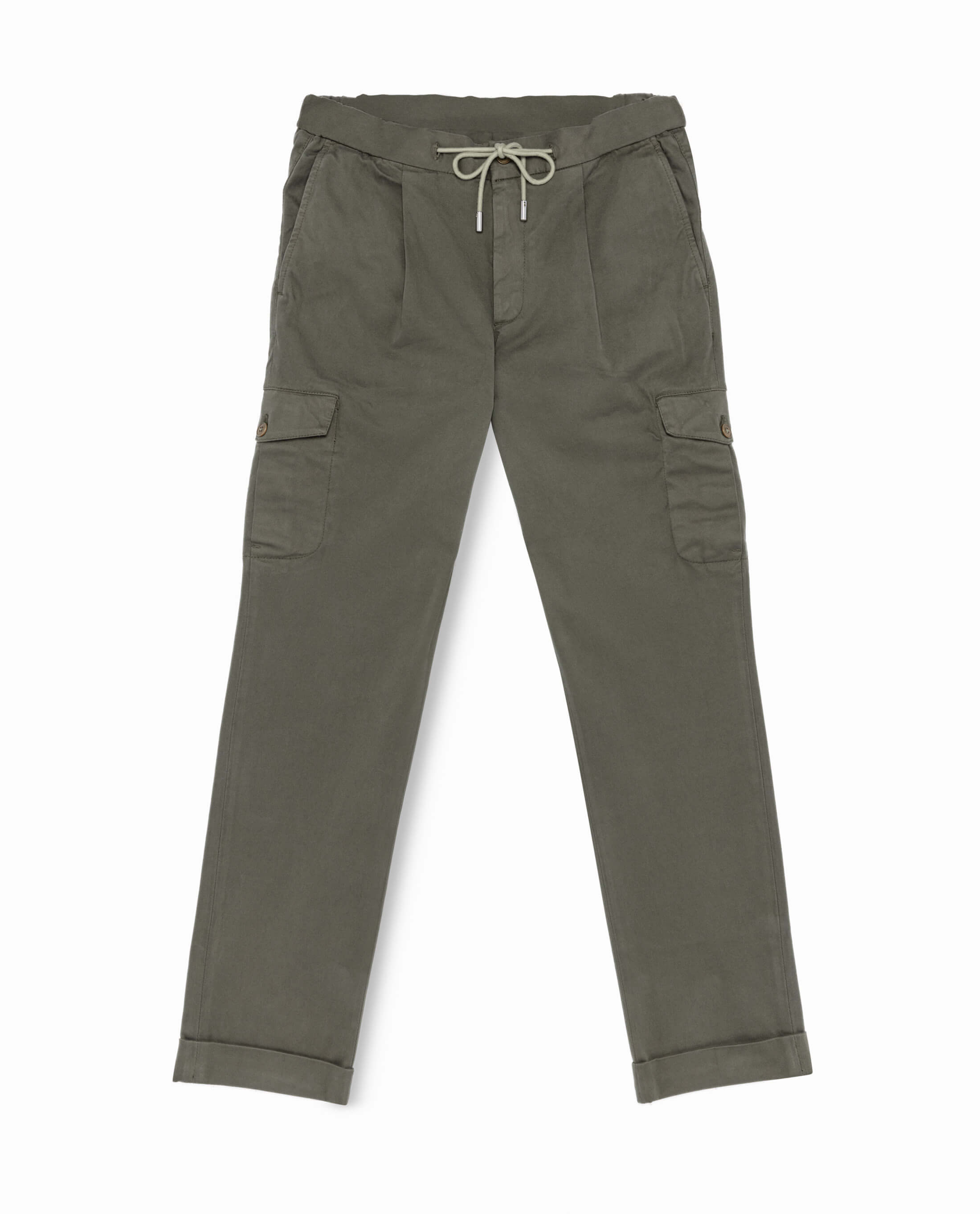 These olive chinos offer modern sophistication. Made from stretch cotton by Olimpias in a broken twill for a solid yet comfortable construction. Dyed as a whole to give a washed color variation along the seams and extra color in the lining. Designed here with a drawstring, cargo pockets, and single pleats. Make these chinos your own with our many customization options to choose from.