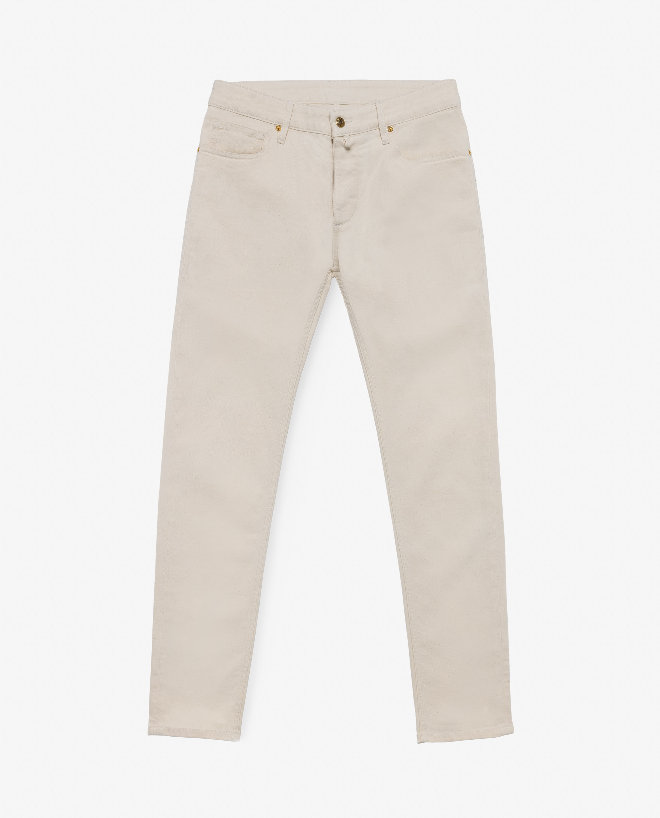 Woven in Italy by Candiani, a heritage denim mill near Milan established in 1938, these lightweight jeans offer the perfect balance of everyday comfort and natural simplicity: made from soft stretch cotton with faintly visible seeds, left undyed in the natural shade of ecru. Designed here with a classic waistband, button fly, and gold rivets. Prefer a different style? Every piece is crafted exclusively for you, with your choice of design options.