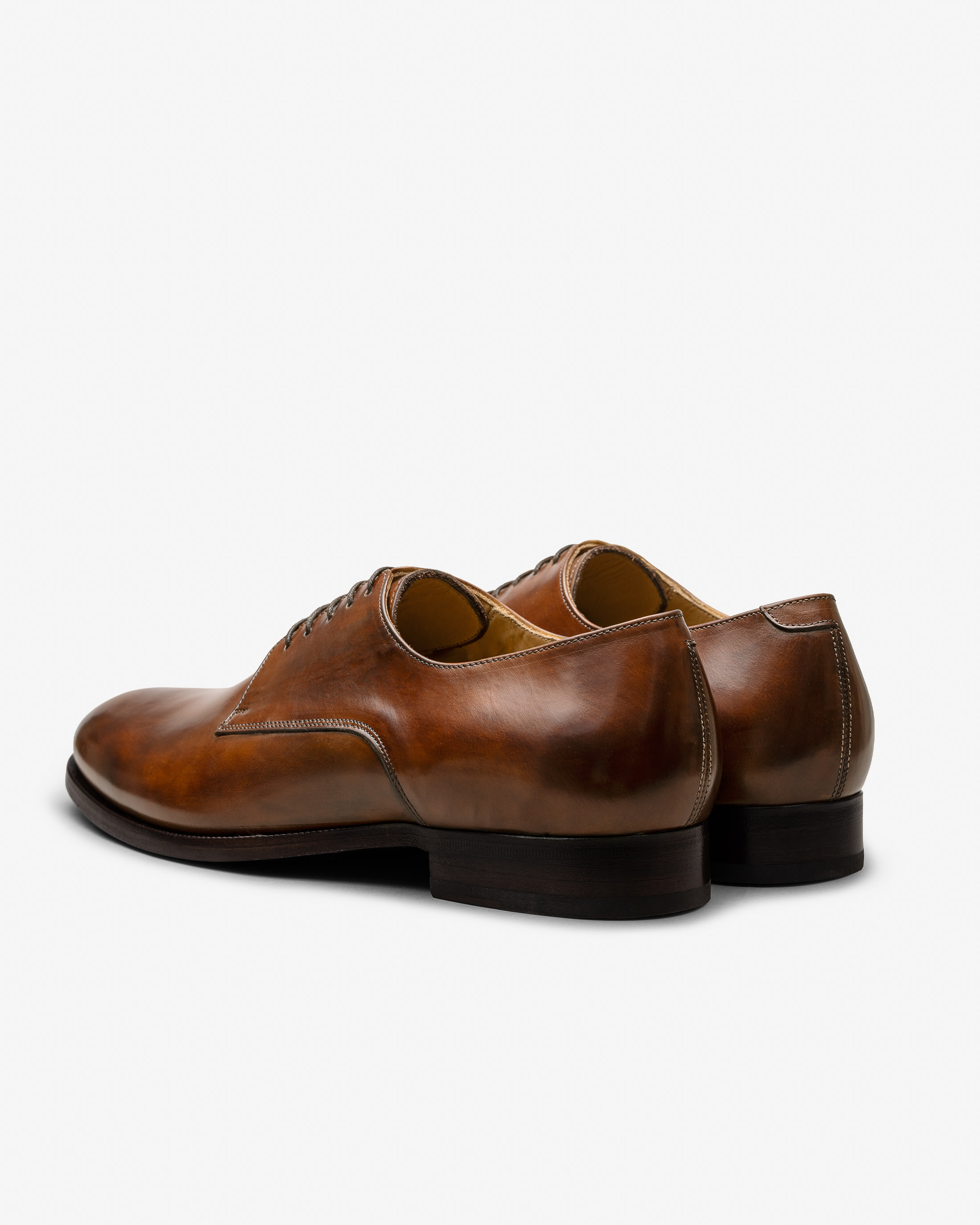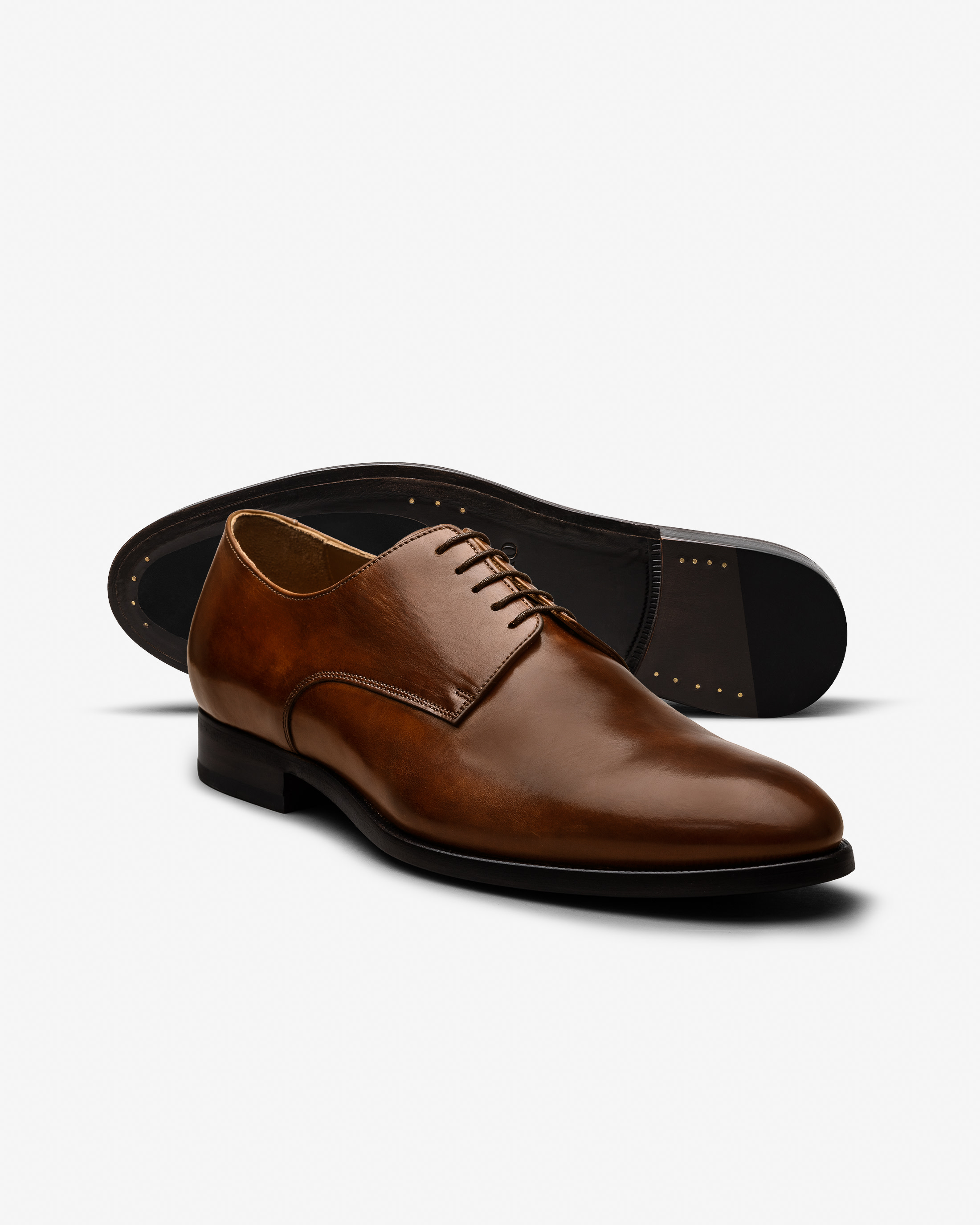 Nut brown hand-painted nubuck shoes embody timeless elegance and understated sophistication. Handmade from artisanal nubuck that is dyed directly on the last, they reveal a rich, authentic finish with natural depth and texture. Through meticulous layering, drying and finishing, every pair becomes truly unique. No two are ever the same. Designed here as plain tip derbies.