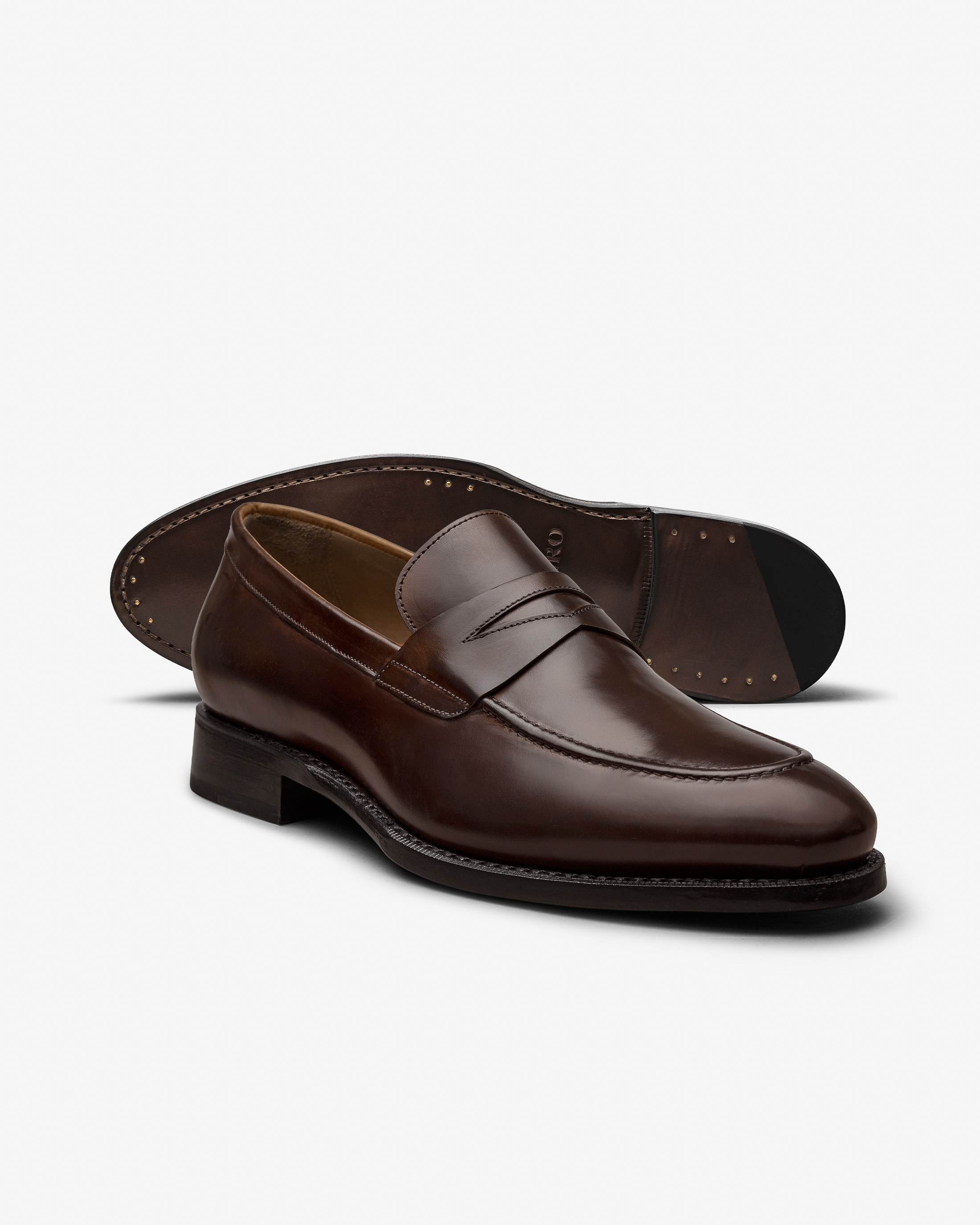 Dark brown hand-painted nubuck shoes embody timeless elegance and understated sophistication. Handmade from artisanal nubuck that is dyed directly on the last, they reveal a rich, authentic finish with natural depth and texture. Through meticulous layering, drying and finishing, every pair becomes truly unique. No two are ever the same. Designed here as penny loafers.