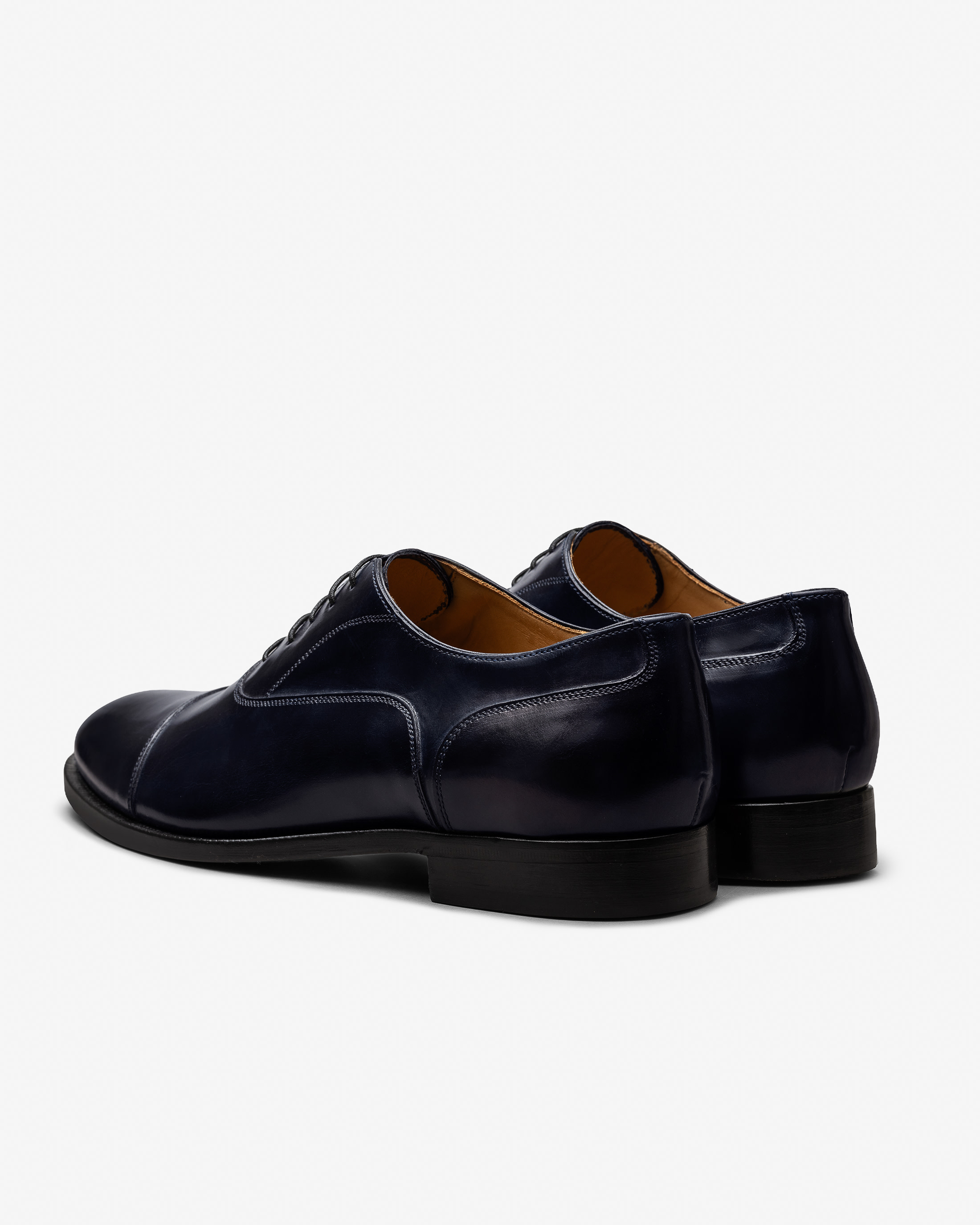 Midnight blue hand-painted nubuck shoes embody timeless elegance and understated sophistication. Handmade from artisanal nubuck that is dyed directly on the last, they reveal a rich, authentic finish with natural depth and texture. Through meticulous layering, drying and finishing, every pair becomes truly unique. No two are ever the same. Designed here as cap toe oxfords.