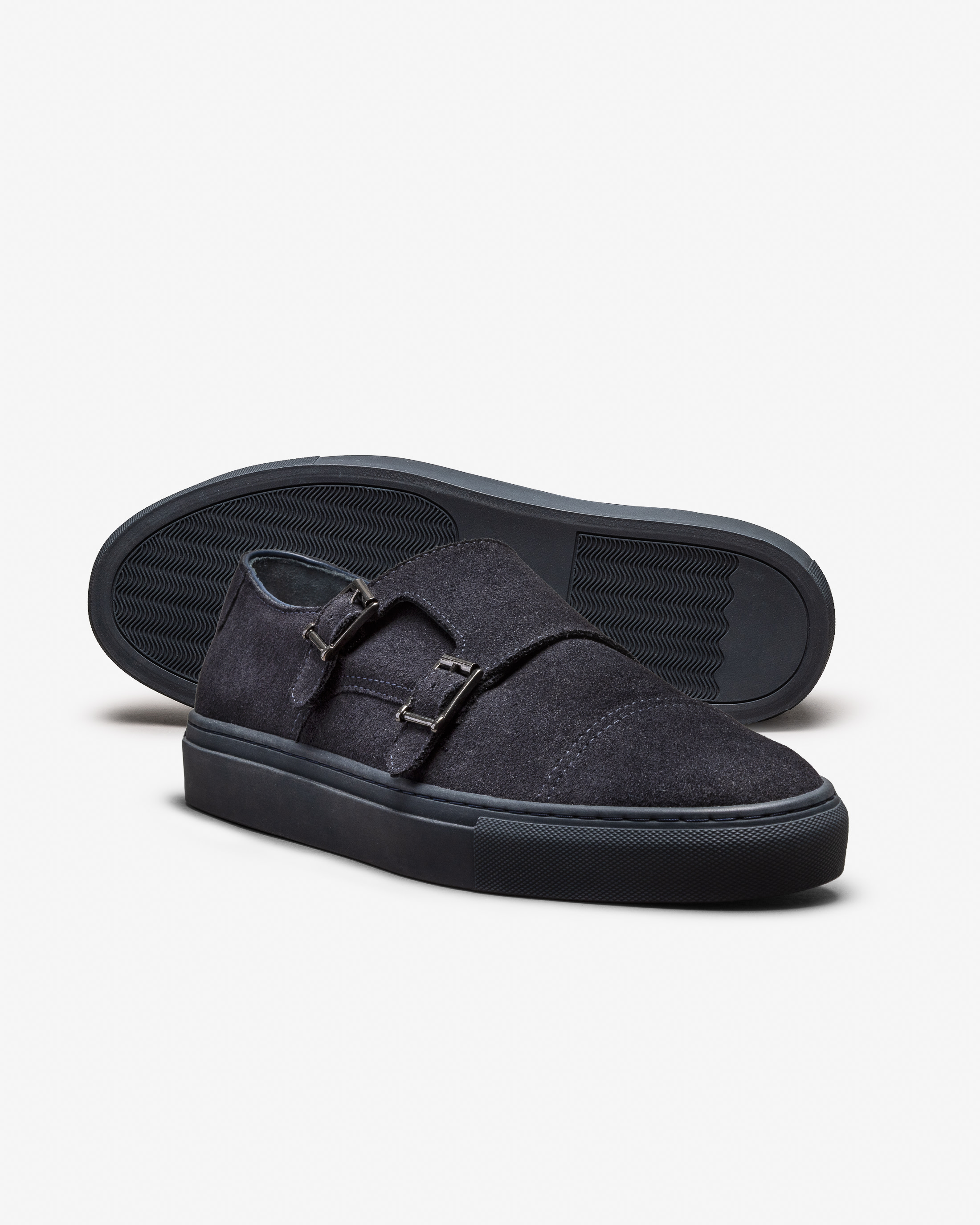 Midnight Blue Suede Double Monk Sneaker