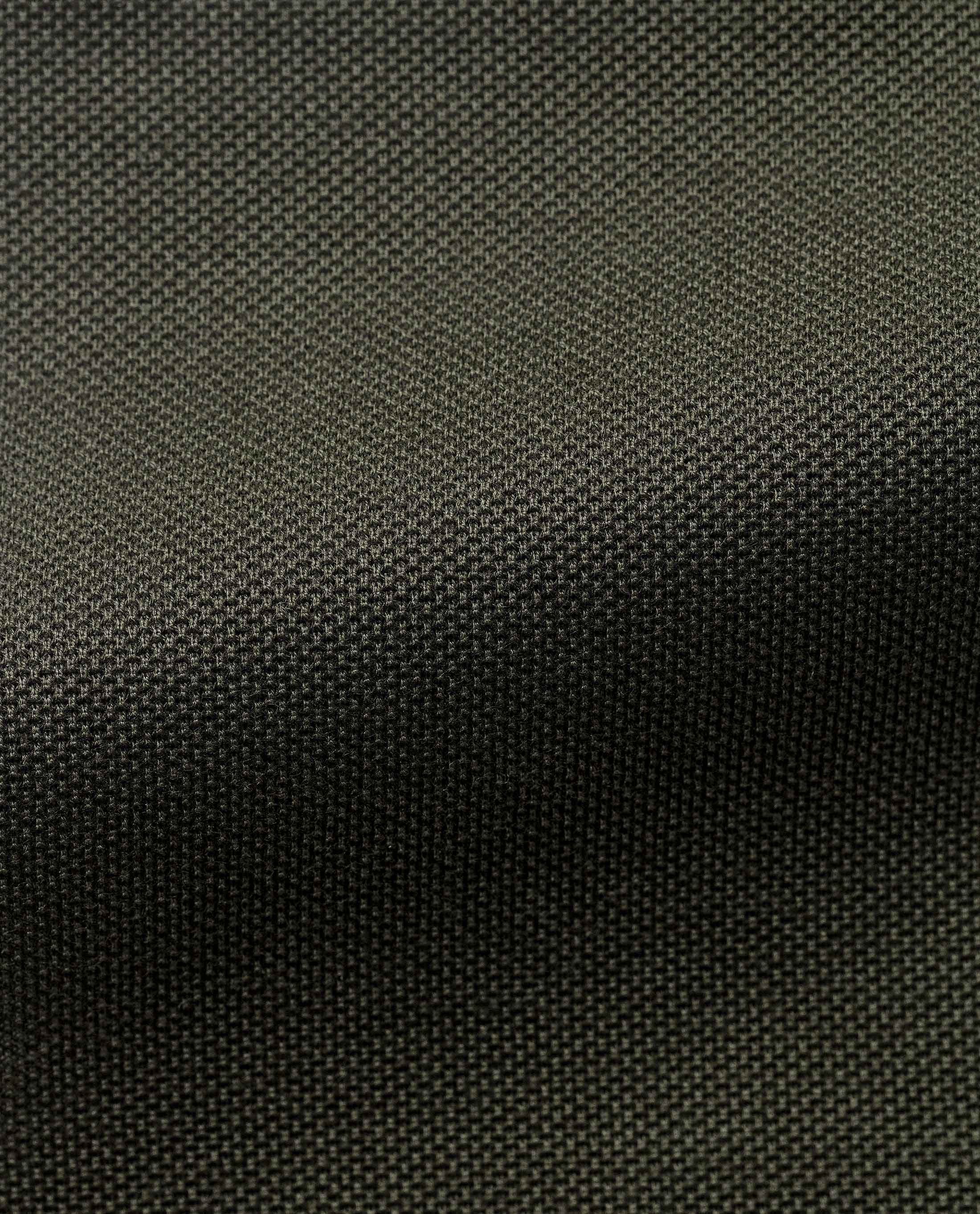 A forest green piqué knit shirting featuring subtle geometirc designs.