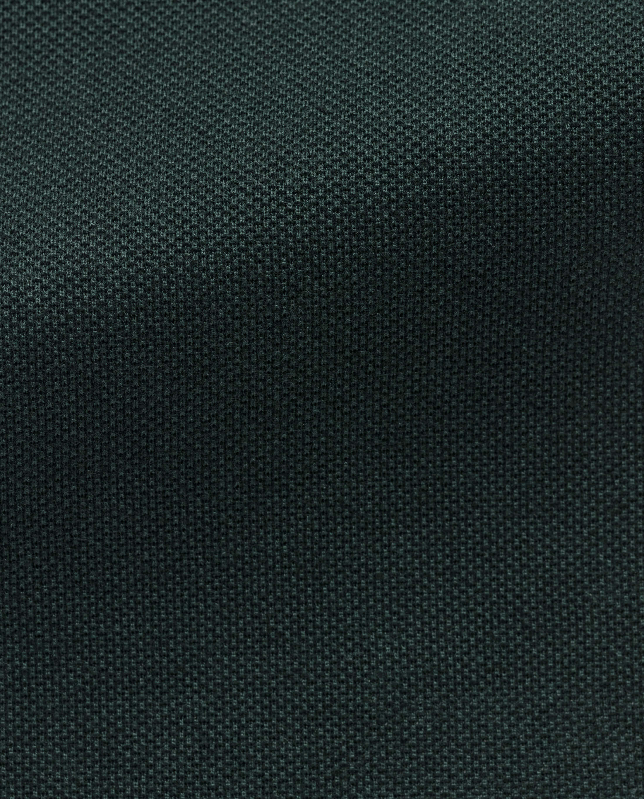 A forest green piqué knit shirting featuring subtle geometirc designs.