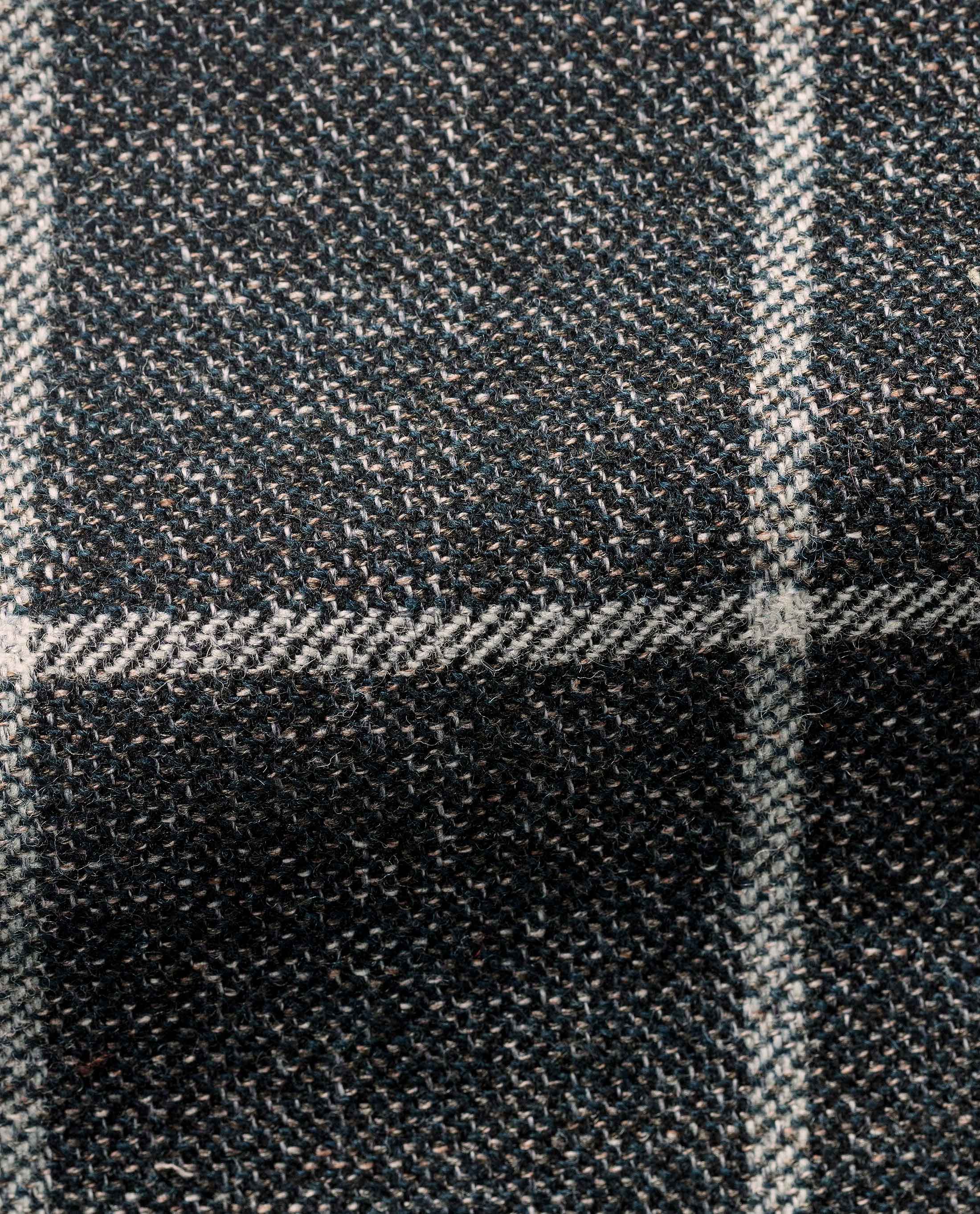 This forest green stretch heathered wool decorated with white windowpane checks is perfect for occasions that call for an extra Style statement. The fabric, woven from wools exclusively gathered from Australia and South Africa, with longer fibers that offer extra breathability and natural comfort, is made all the more interesting by double-twisted yarns that create a stronger construction and speckled effect.