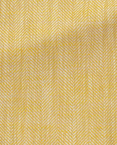 A peculiar 3-dimensional effect immediately grabs the eye in this charming yellow and white textured jacket with a small herringbone pattern. Woven from a blend of silk, linen, and cotton flamed yarns, this fabric has a light and airy quality that exudes a casual confidence.