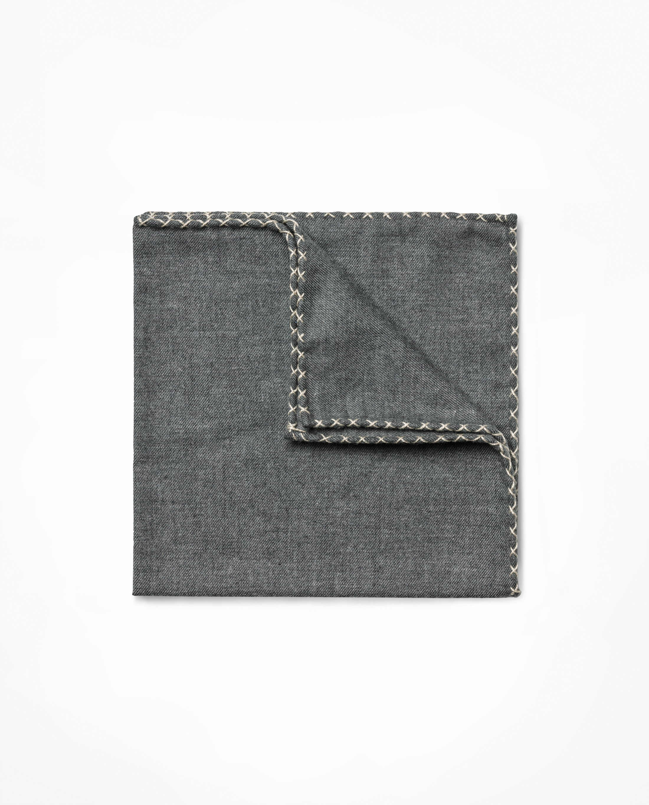 Lightweight and relatively prone to wrinkles (the reason we only offer a blended version for ties), cotton is a strong natural fiber that is airy and easy to clean. This grey flannel twill comes in perfectly neutral beige livened up with across-cross stitch edging.