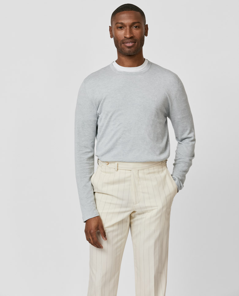 This seamless icy gray knit is made for layering. Crafted on 3D knitting machines from a blend of breathable Turkish cotton and soft Inner Mongolian cashmere. Designed here as a crew neck t-shirt with a straight silhouette, in single ply for a lightweight look. Make this knitwear your own from our customization options. Cotton & cashmere Breathable Soft feel