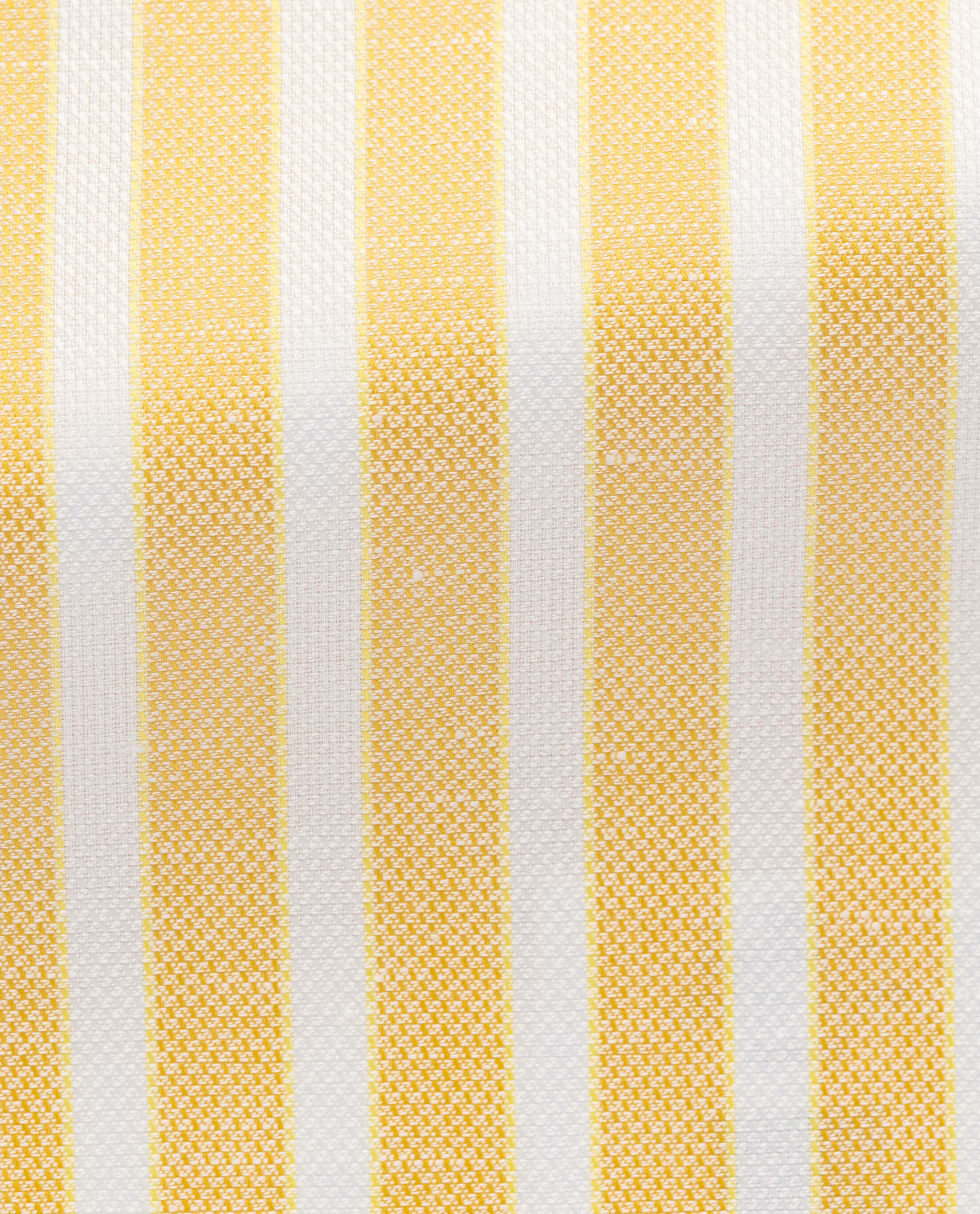 A cotton and linen basketweave shirting. Here in lemon yellow featuring white stripes.
