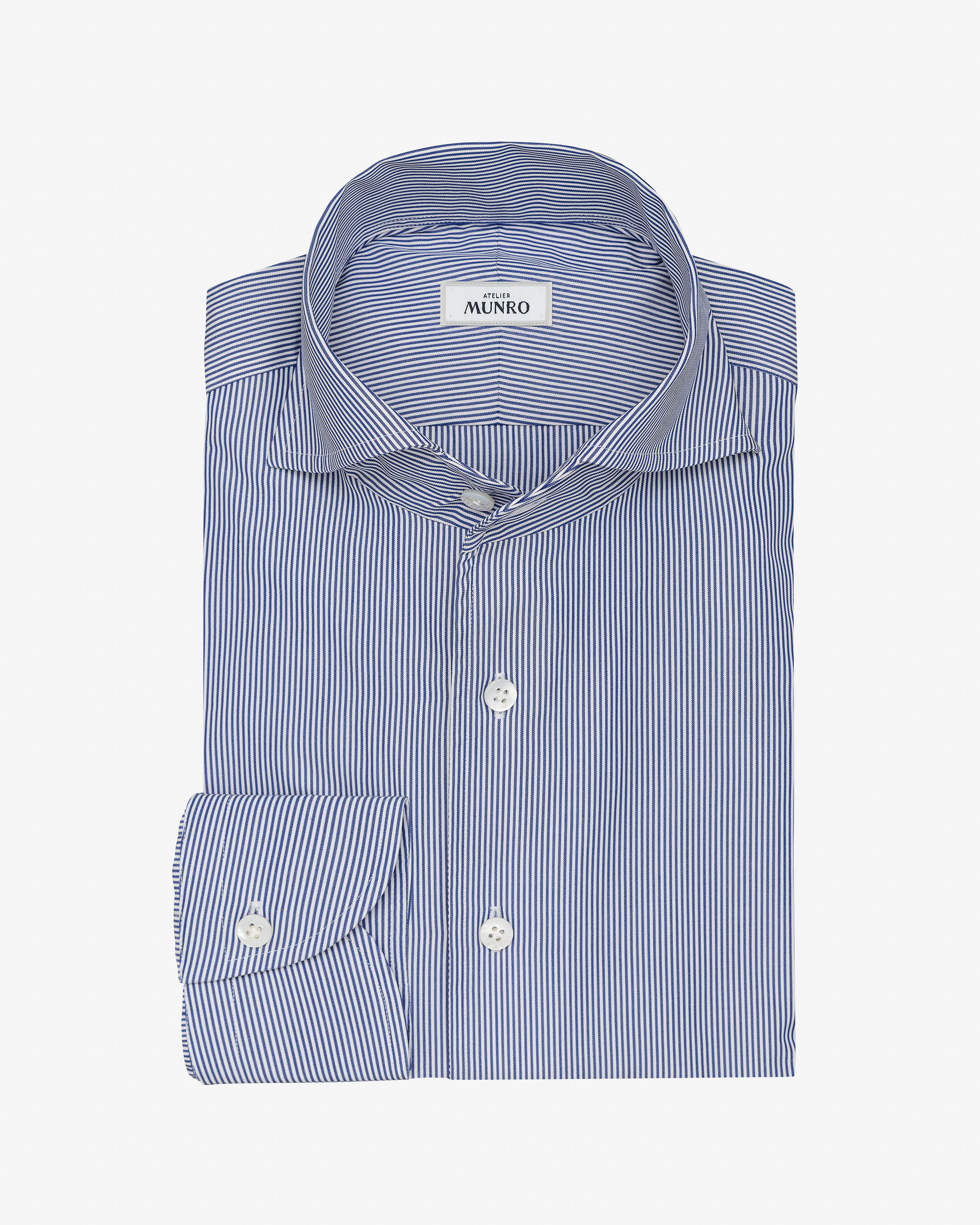 A timeless staple with heritage appeal, this royal blue Bengal stripe shirt delivers crisp sophistication. Crafted from a cotton poplin enhanced by double-twisted yarns for exceptional smoothness and durability. Prefer a different style? Every piece is made exclusively for you, with your choice of design options. 100% cotton Compact poplin Bengal stripe Double-twisted yarns Crisp feel